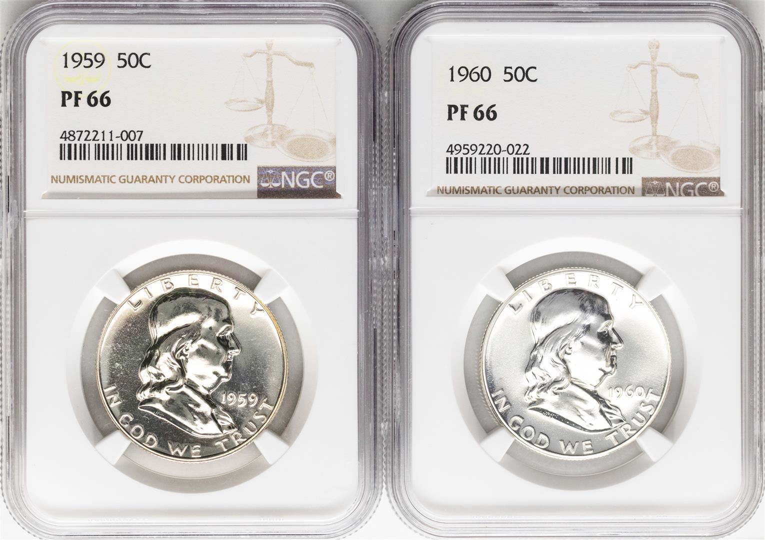 One Lot of 1959 & 1960 Franklin Half Dollar Coins NGC PF66. NGC Certified.