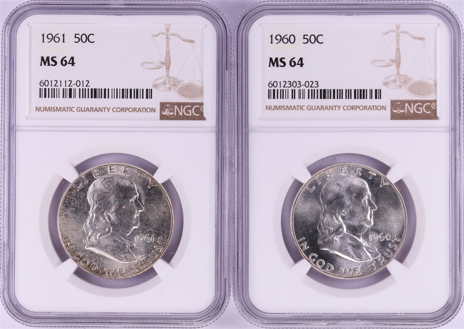 One Lot of 1960-1961 Franklin Half Dollar Coins NGC MS64. NGC Certified.