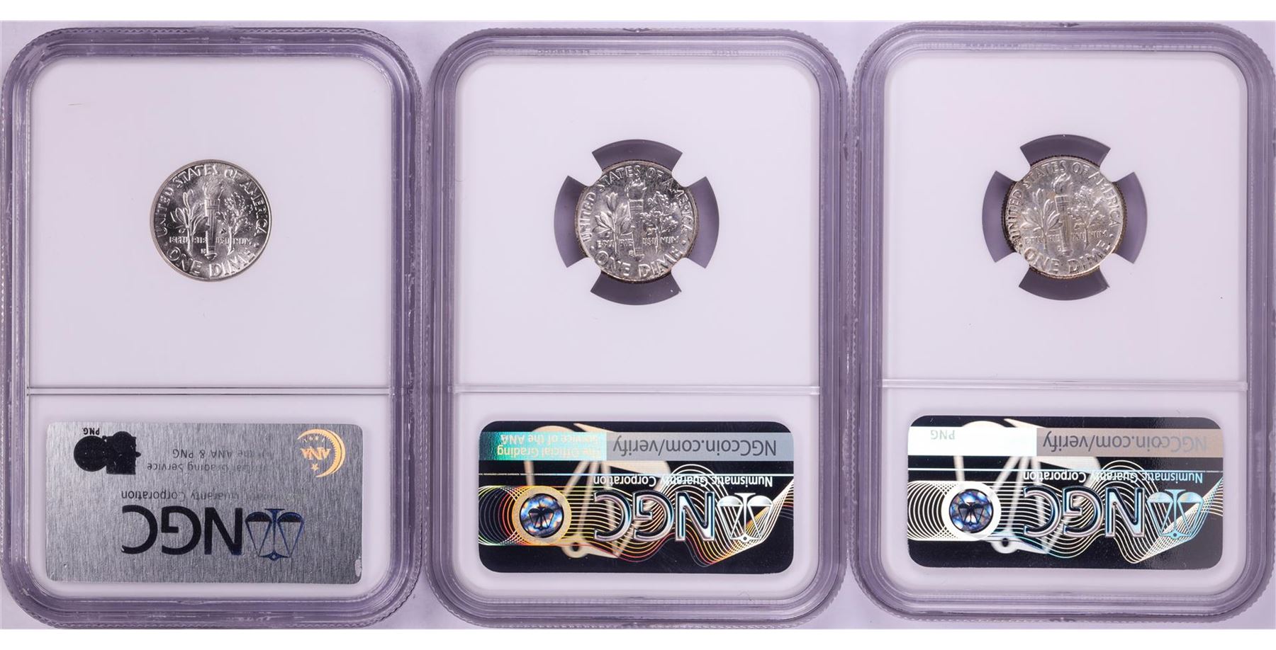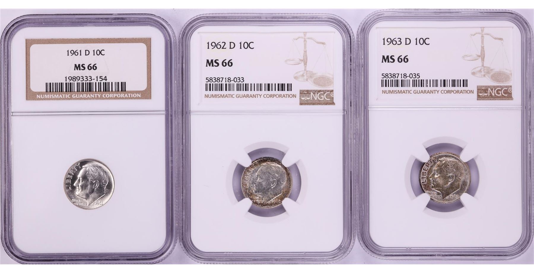 One Lot of 1961-D to 1963-D Roosevelt Dime Coins NGC MS66. NGC Certified.