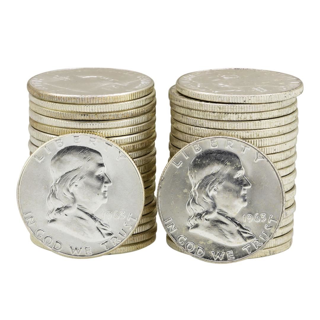 Lot of 1963 & 1963-D Brilliant Uncirculated Franklin Half Dollar Rolls