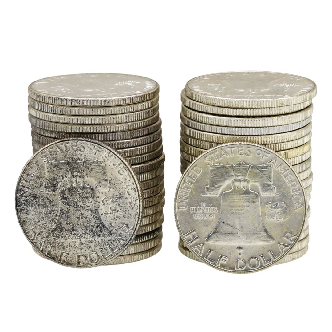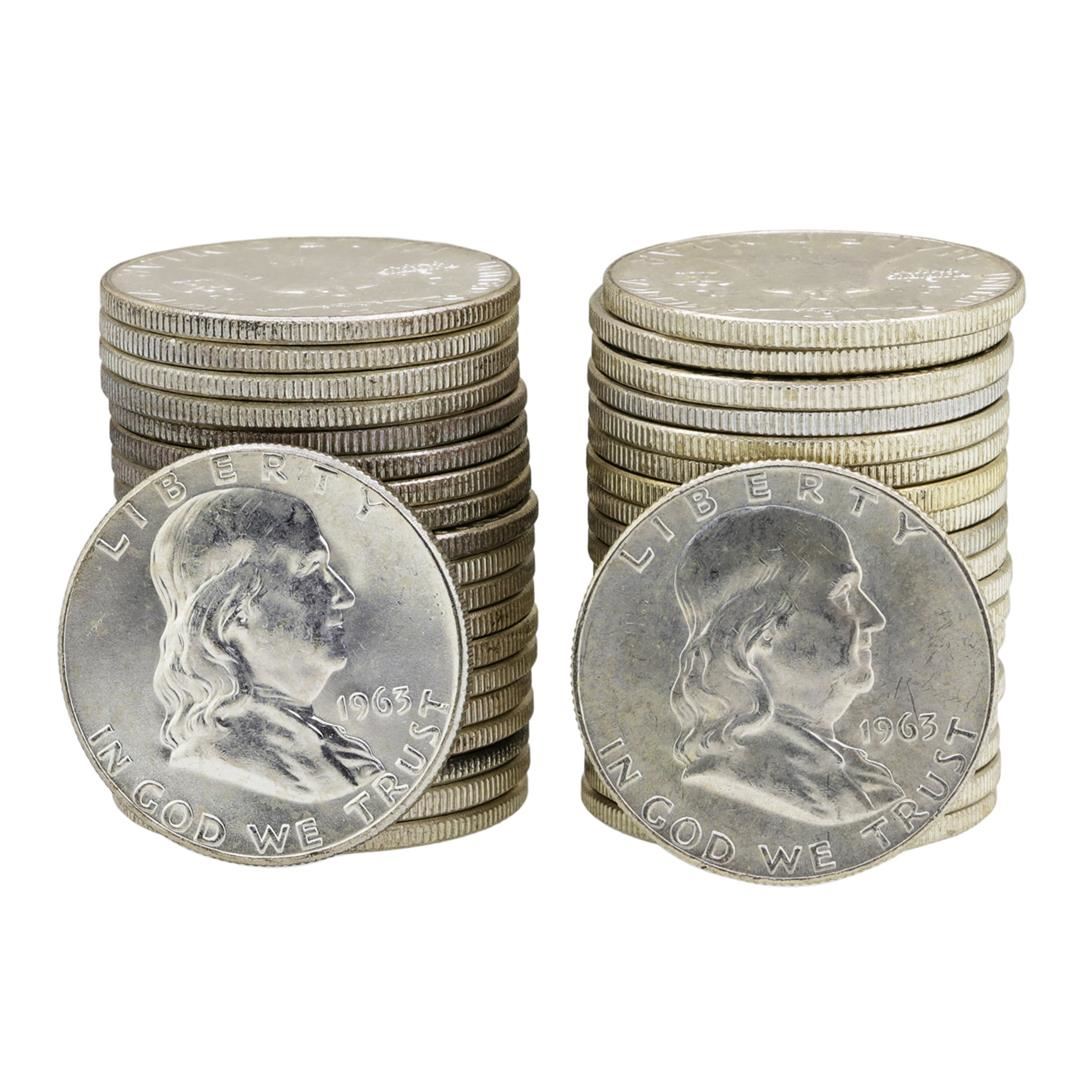 Lot of 1963 & 1963-D Brilliant Uncirculated Franklin Half Dollar Rolls