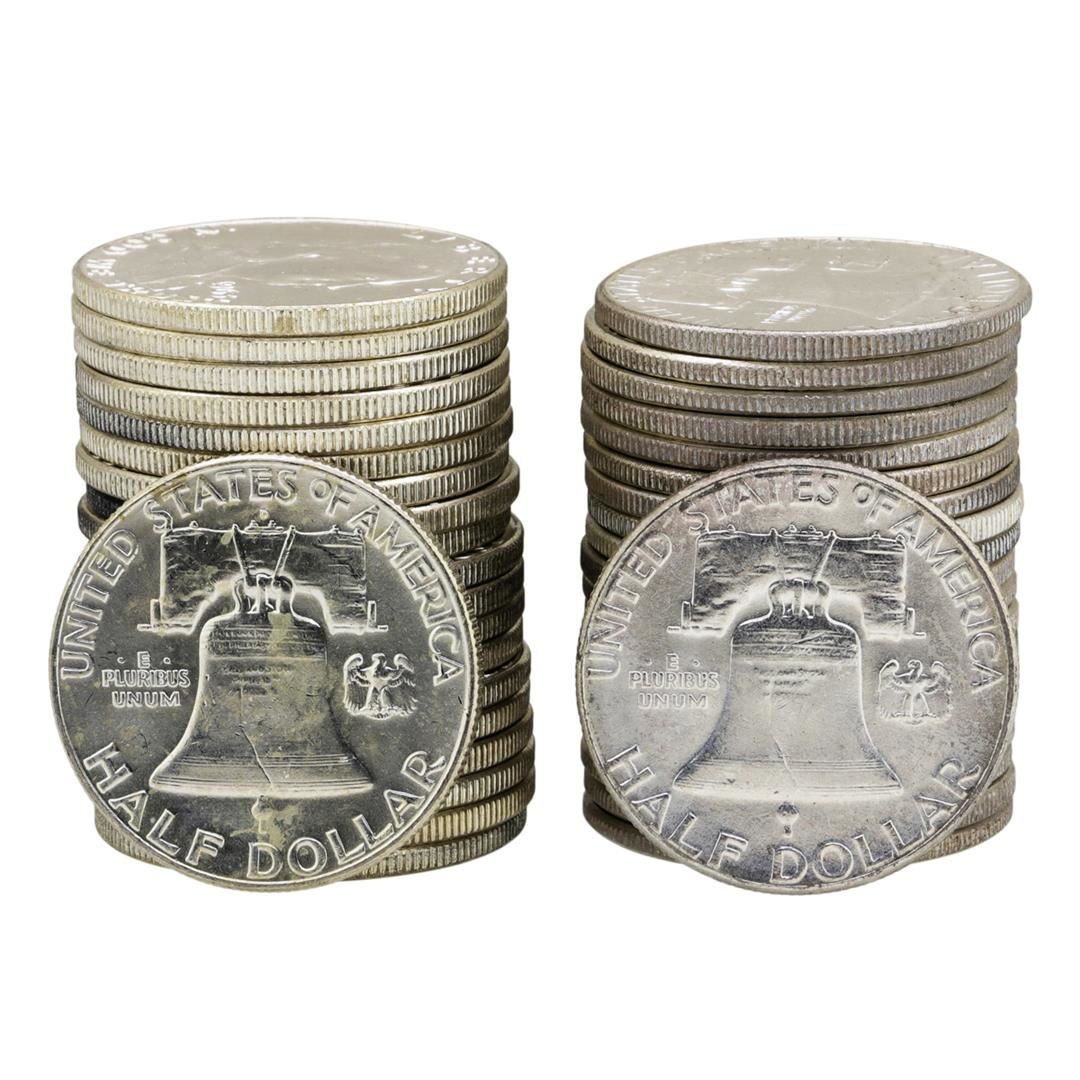 Lot of 1963 & 1963-D Brilliant Uncirculated Franklin Half Dollar Rolls