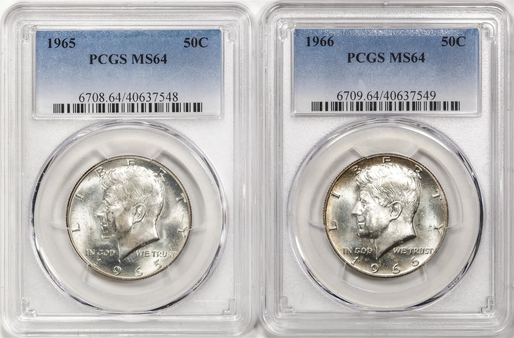 One Lot of 1965-1966 Kennedy Half Dollar Coins PCGS MS64. PCGS Graded.