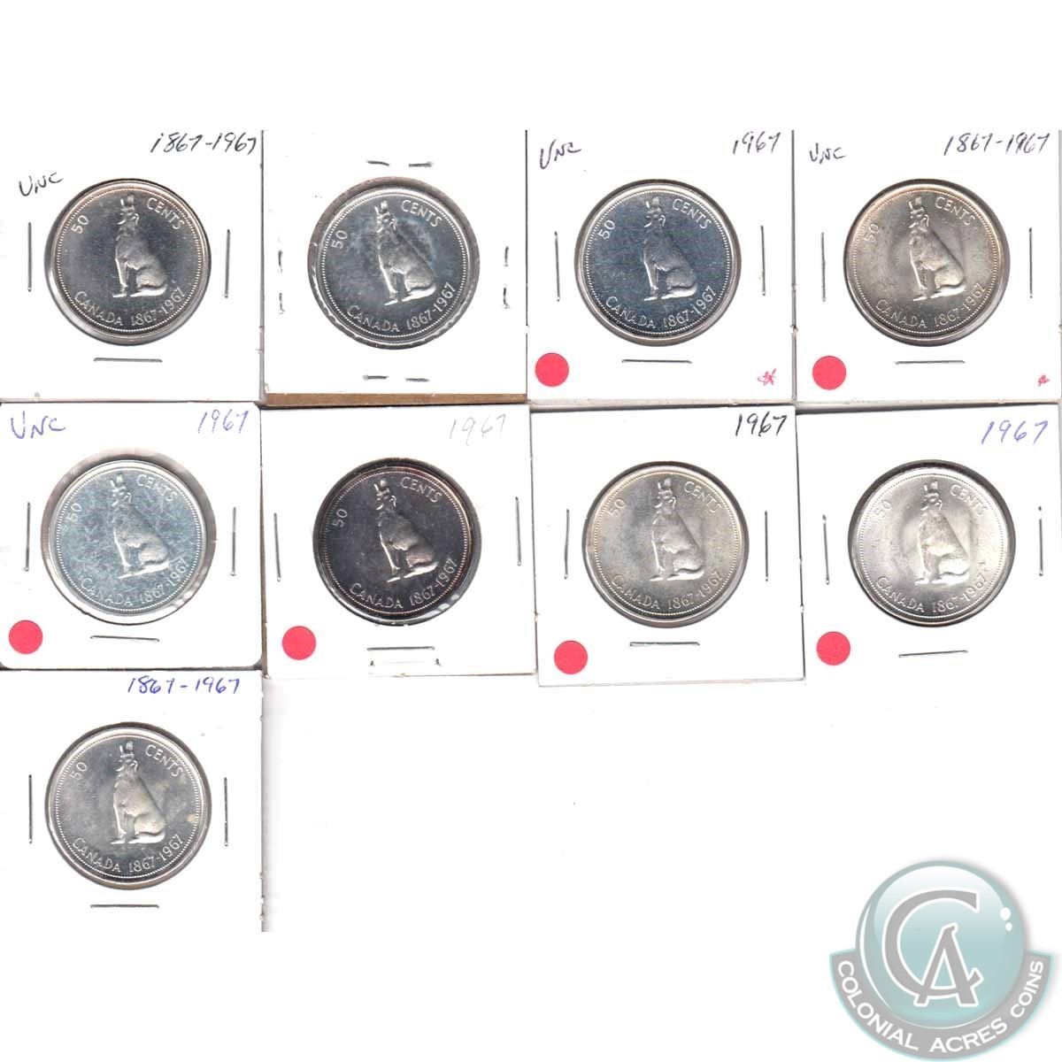 Lot of 1967 Canada Silver 50-cent. 9pcs