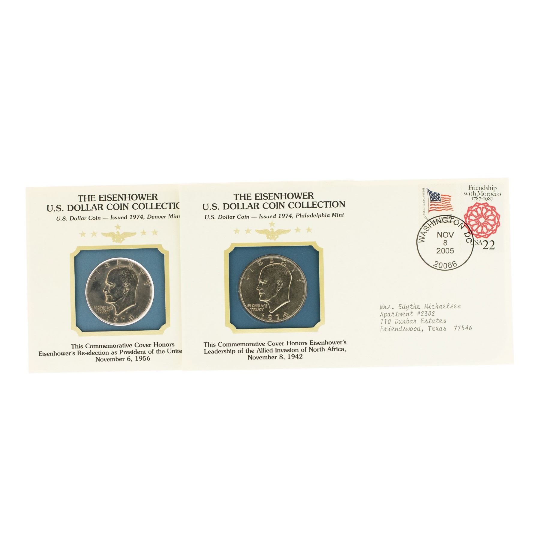 Lot of 1974 & 1974-D Eisenhower Dollars Collection Coin Cover & Stamp