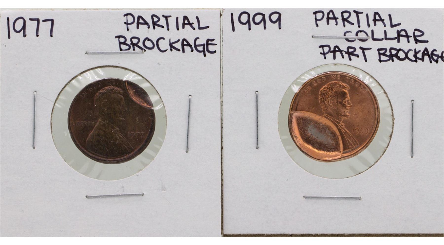 One Lot of 1977 Partial Brockage & 1999 Partial Collar Brockage Lincoln Cent ERROR Coins.