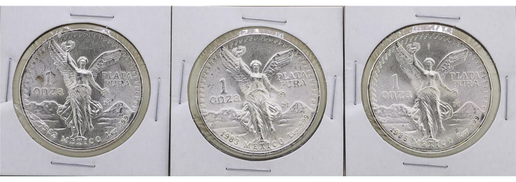 One Lot of 1982Mo/1983Mo/1985Mo Mexico Silver Libertad Coins.