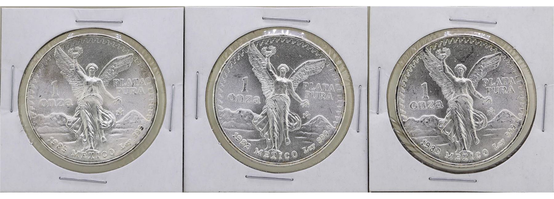One Lot of 1982Mo/1983Mo/1985Mo Mexico Silver Libertad Coins.