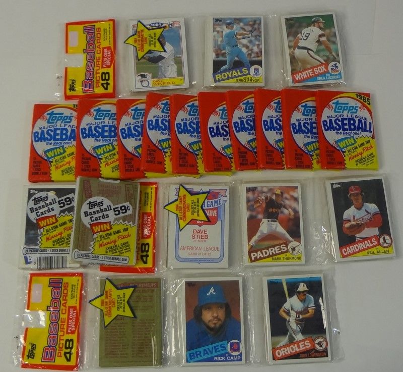 Lot of 1985 Topps Baseball: 10 Wax Packs, 3 Rak Paks, 2 Cello Packs