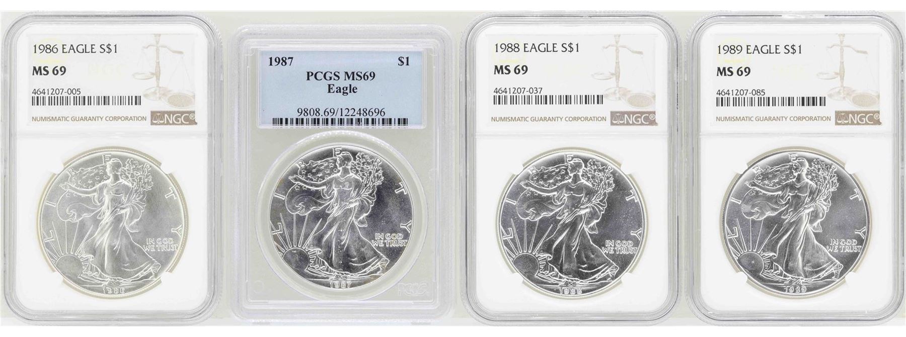 One Lot of 1986-1989 $1 American Silver Eagle Coins PCGS/NGC MS69. NGC Certified.