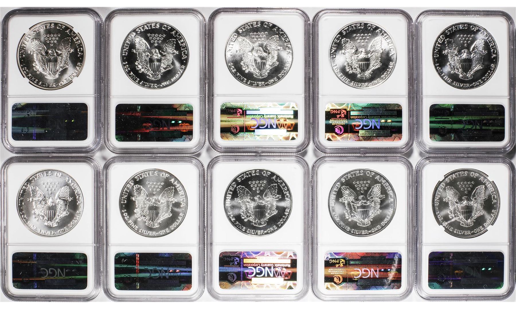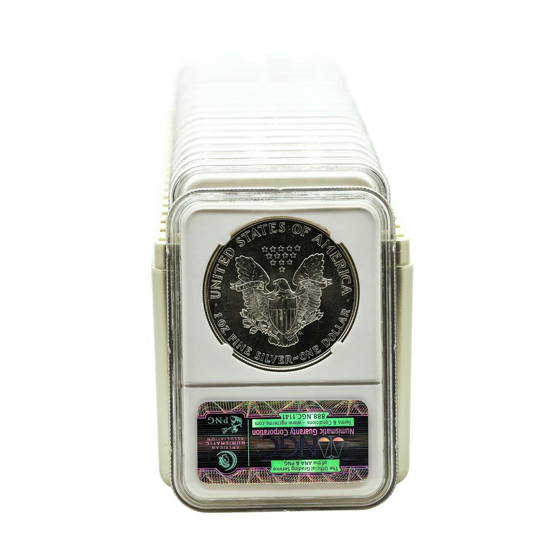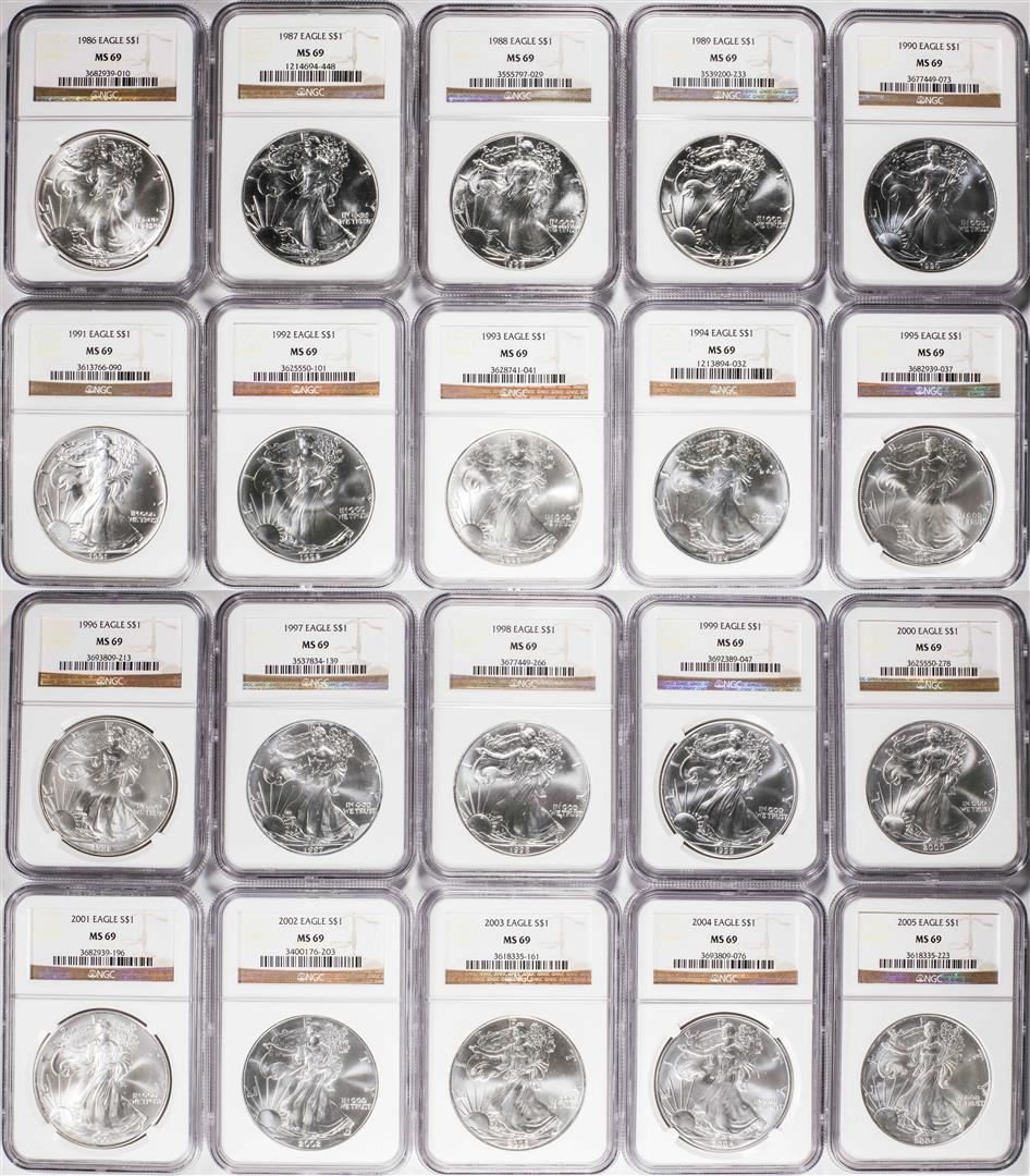 One Lot of 1986-2005 $1 American Silver Eagle Coin Set NGC MS69. NGC Certified.