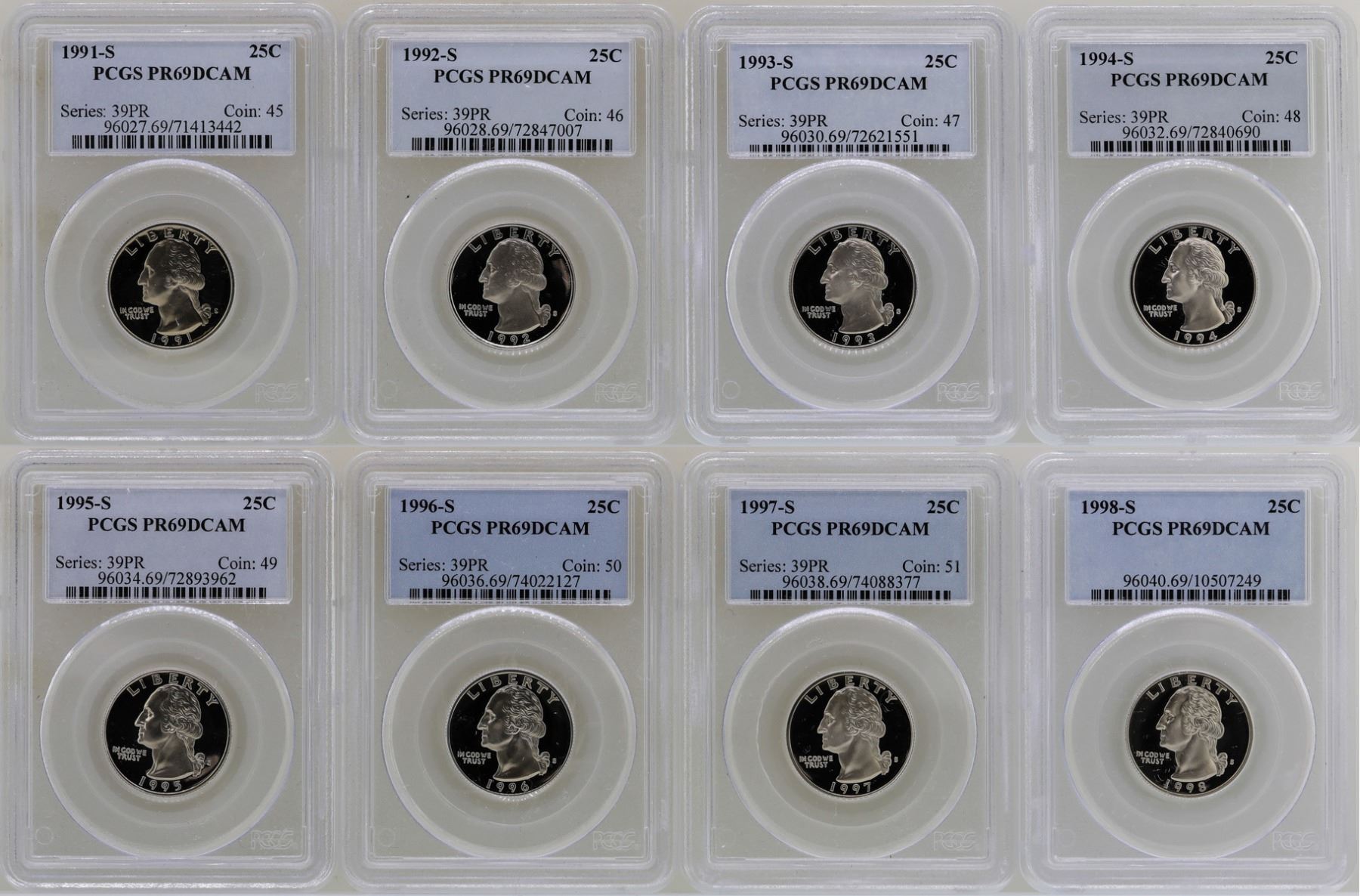 Lot of 1991-S to 1998-S Proof Clad Washington Quarter Coins PCGS PR69DCAM