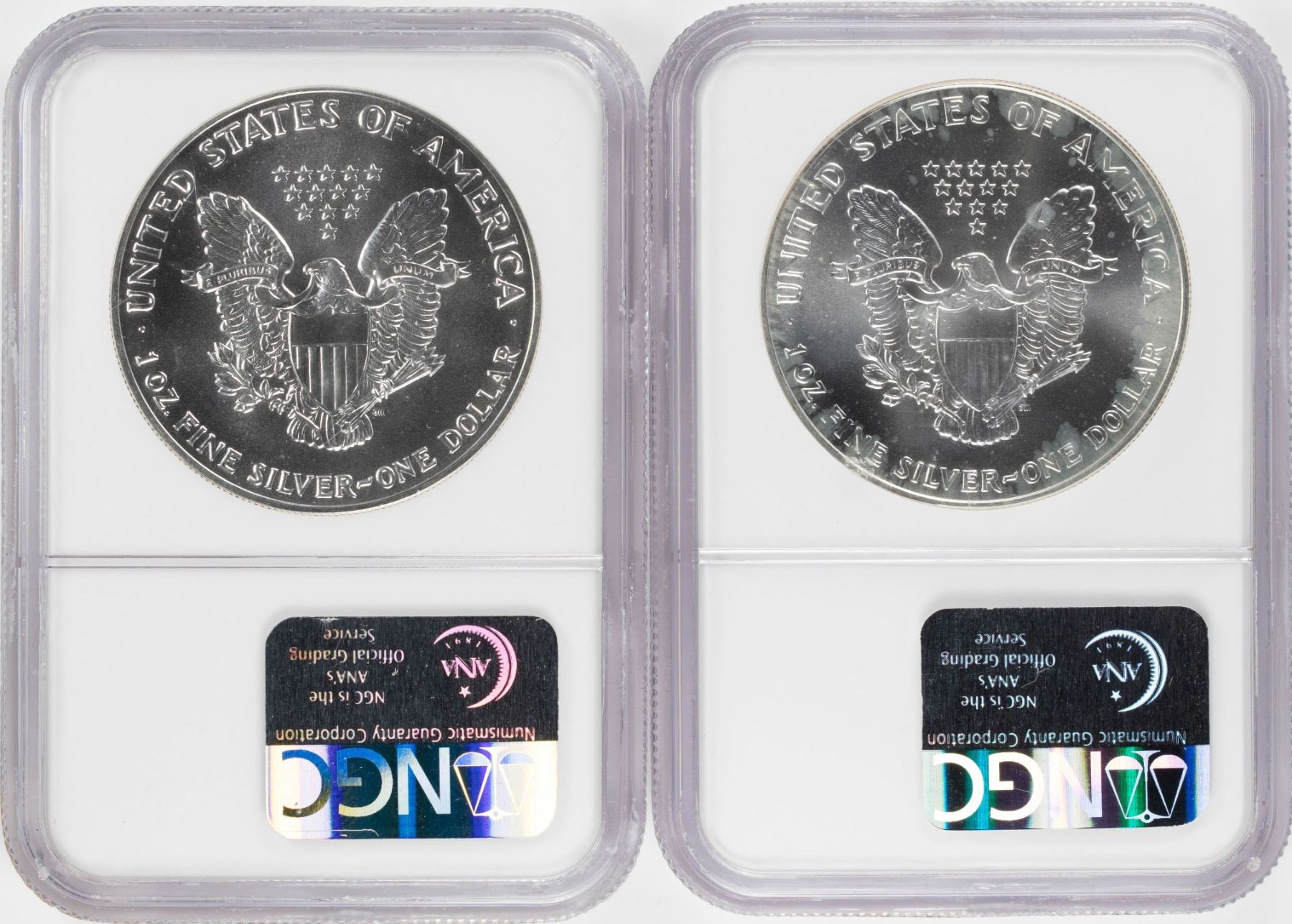 One Lot of 1992-1993 $1 American Silver Eagle Coins NGC MS69.