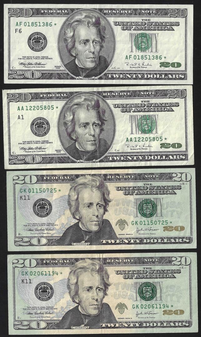 One Lot of 1996 & 2004A $20 Federal Reserve Star Notes.