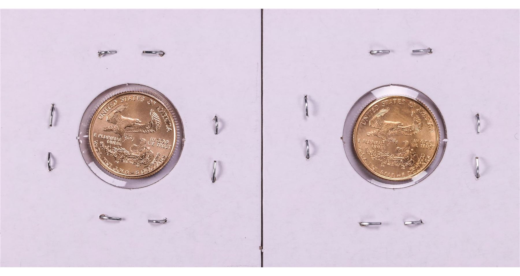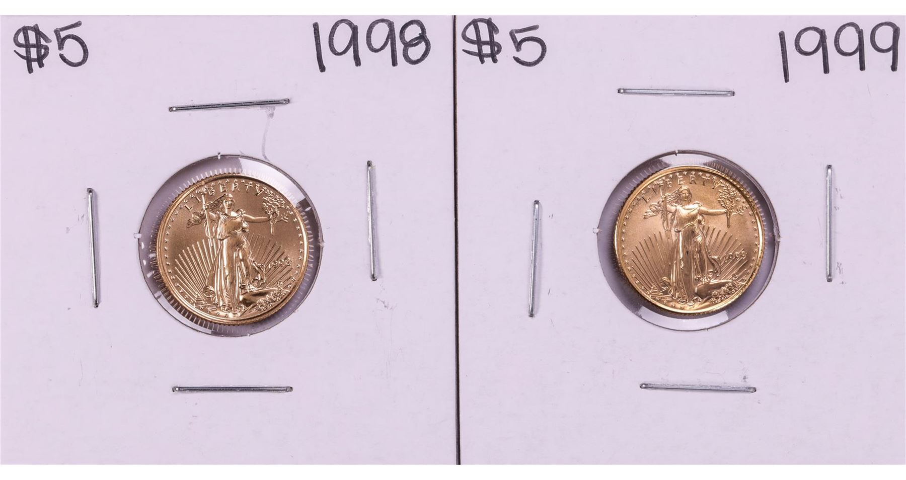 One Lot of 1998-1999 $5 American Gold Eagle Coins.