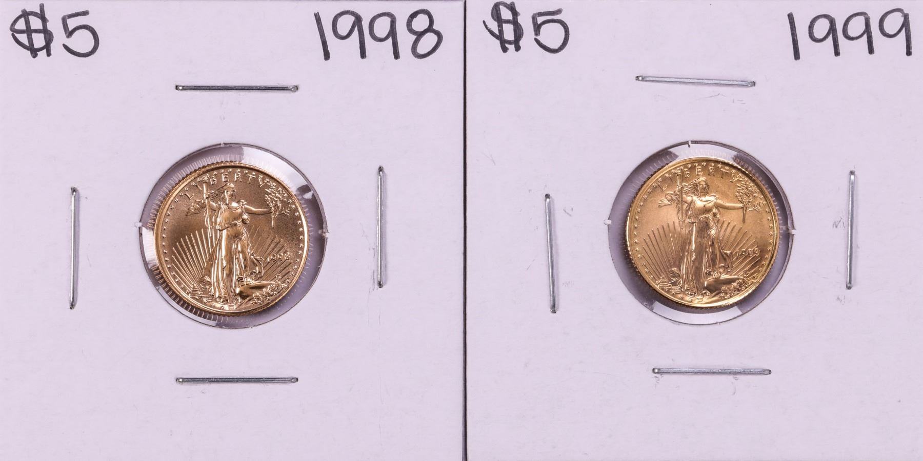 One Lot of 1998-1999 $5 American Gold Eagle Coins.