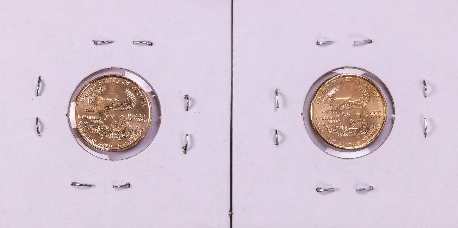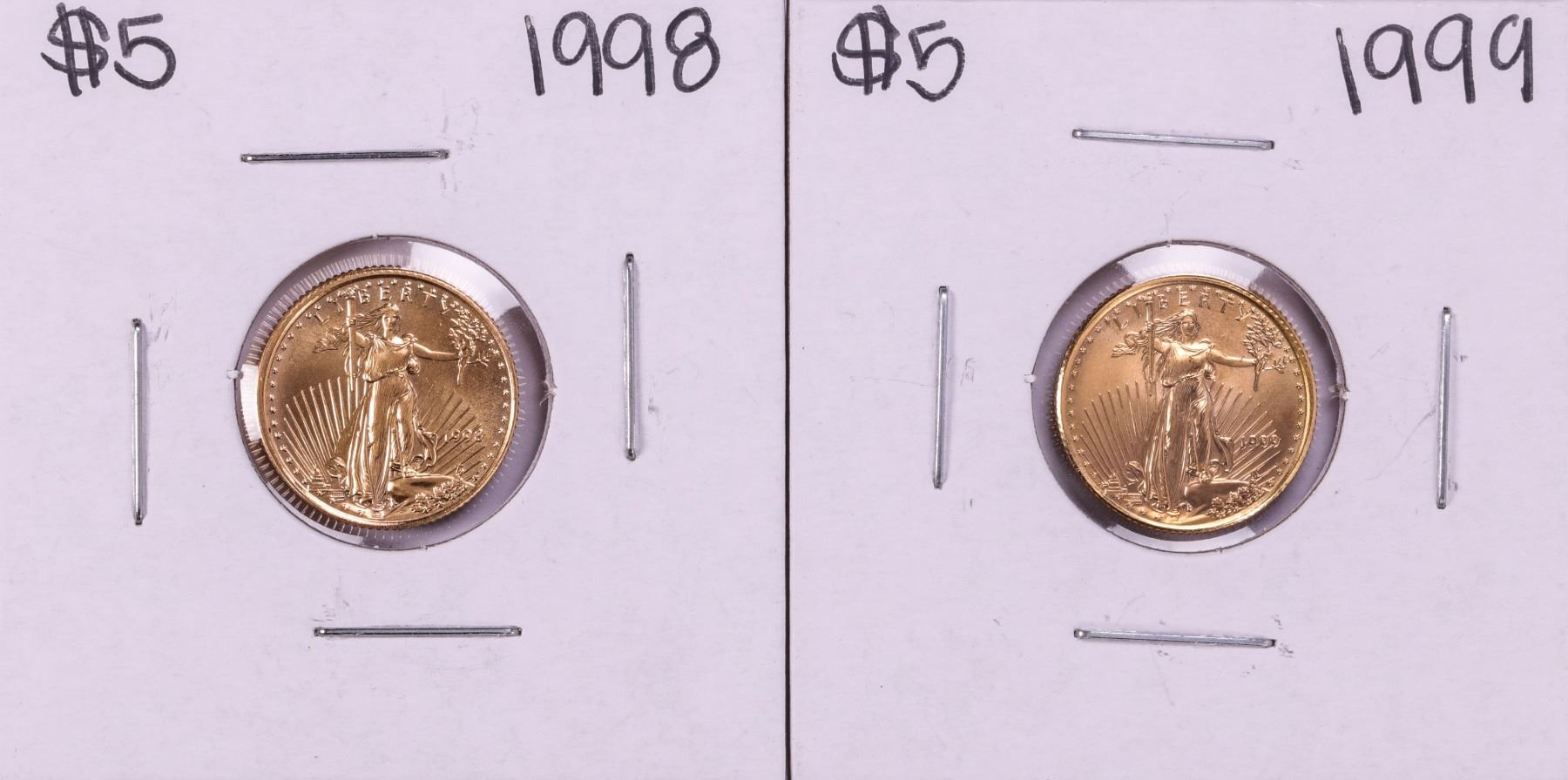 One Lot of 1998-1999 $5 American Gold Eagle Coins.