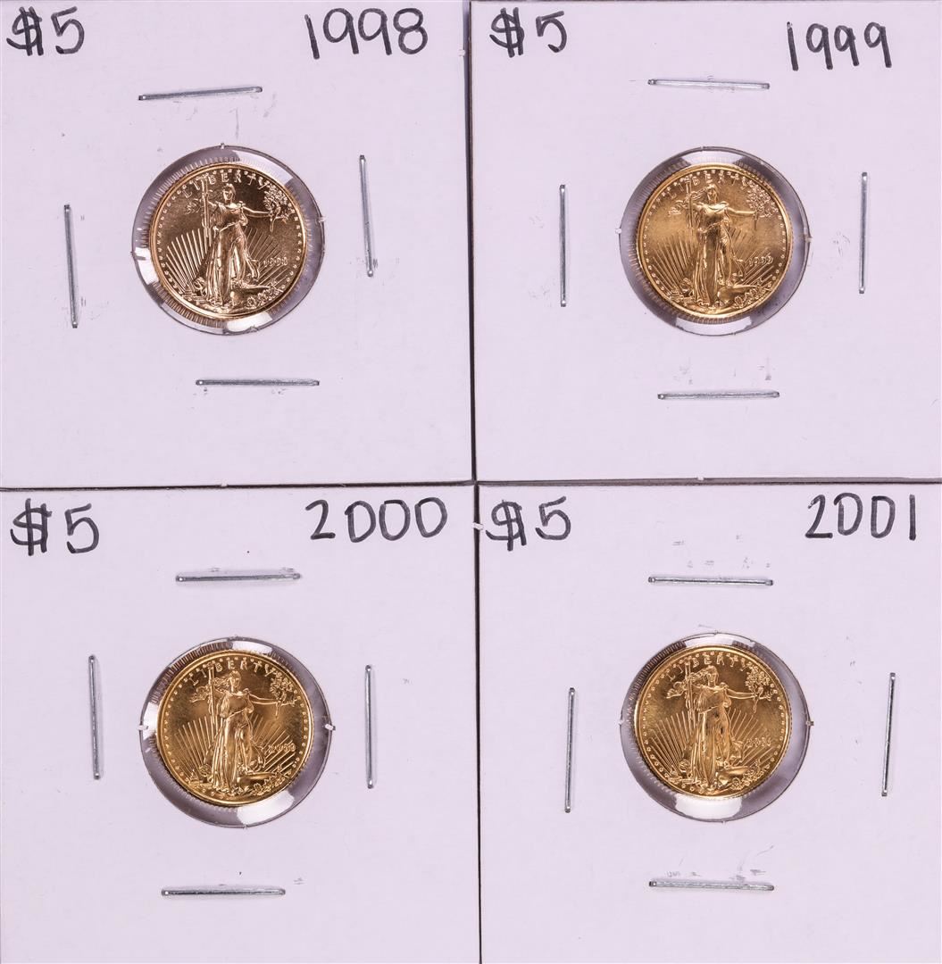 One Lot of 1998-2001 $5 American Gold Eagle Coins.
