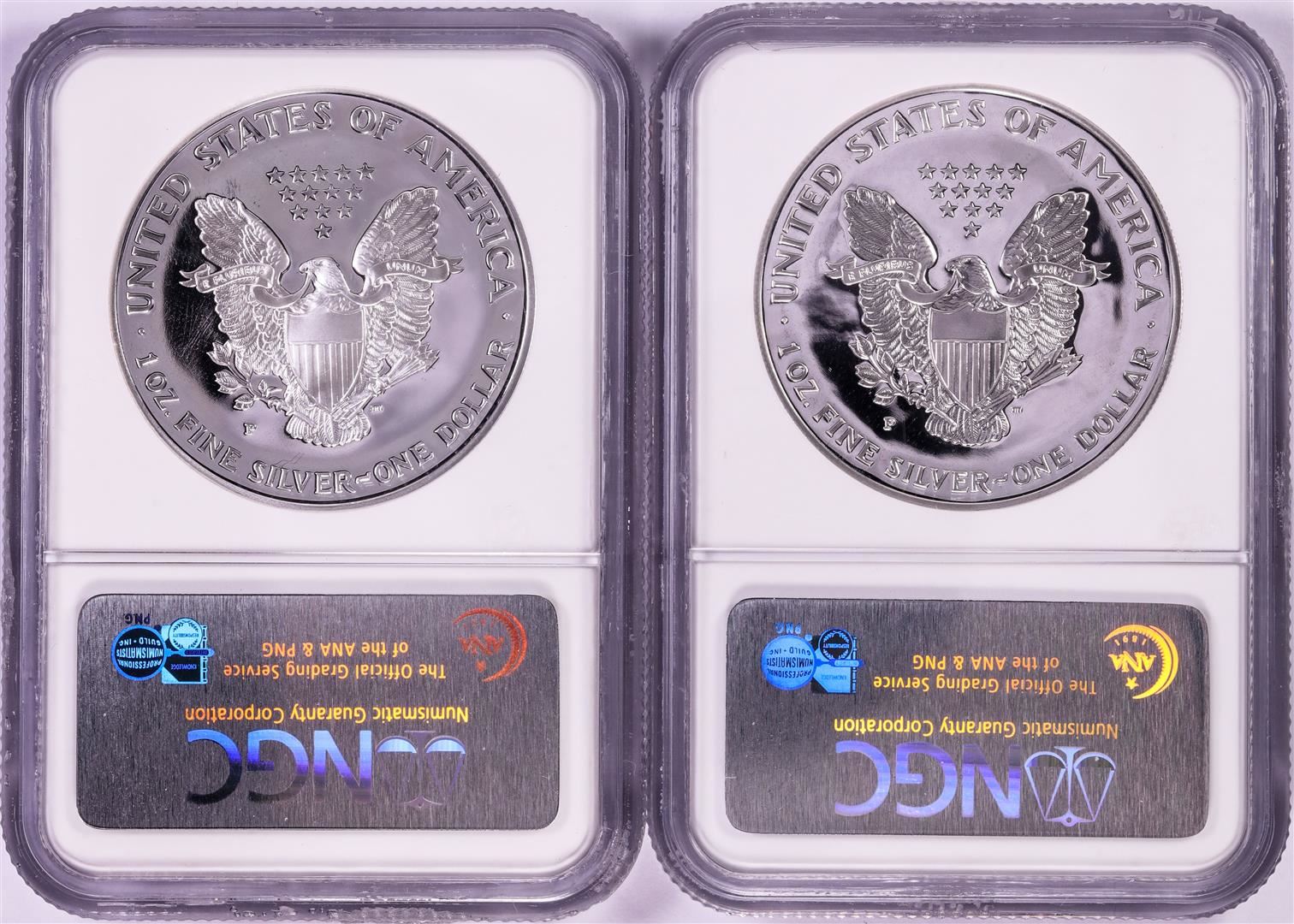 One Lot of 1998-P to 1999-P $1 Proof American Silver Eagle Coins NGC PF69 Ultra Cameo. NGC Certified.