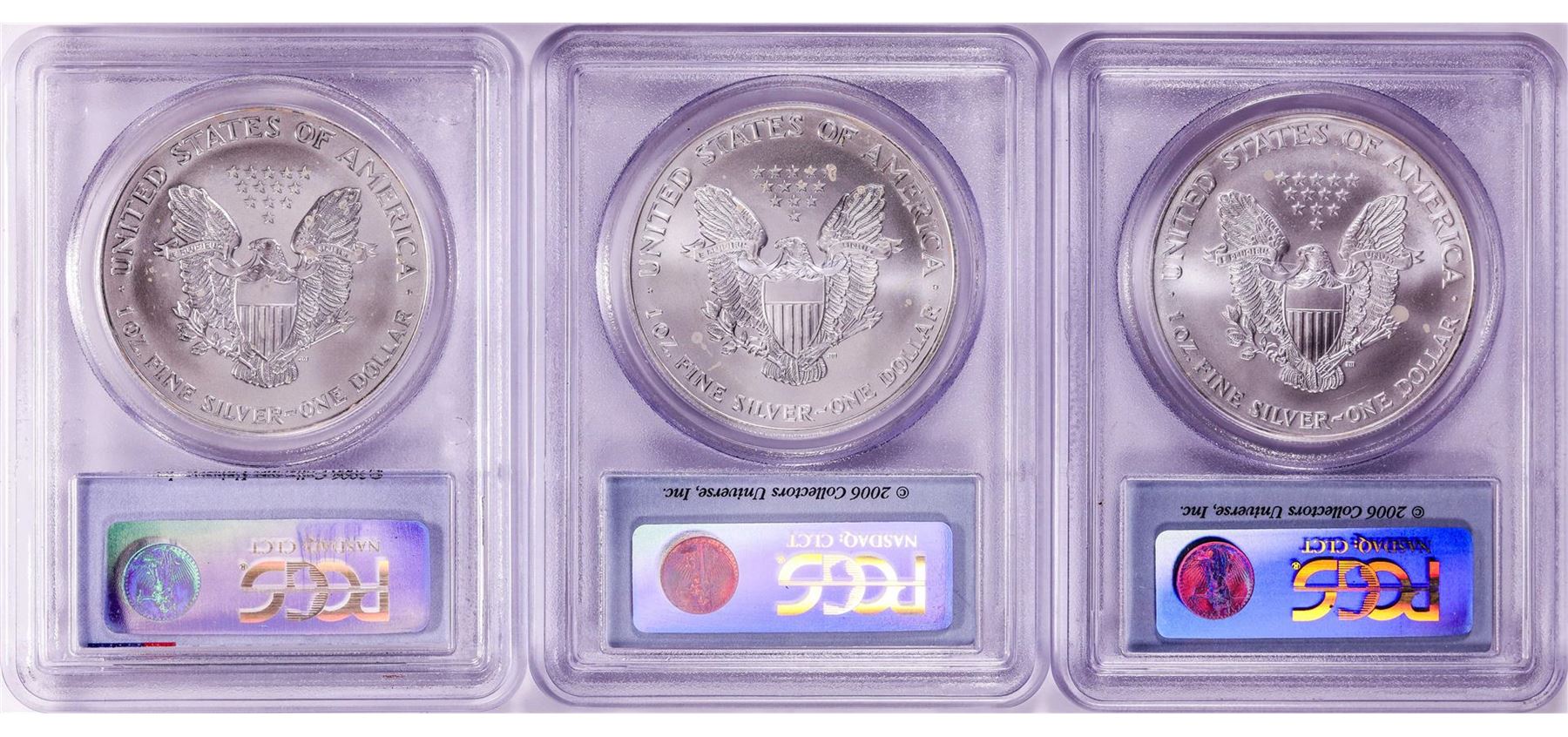 One Lot of 1999-2001 $1 American Silver Eagle Coins PCGS MS68 First Strike. PCGS Graded.