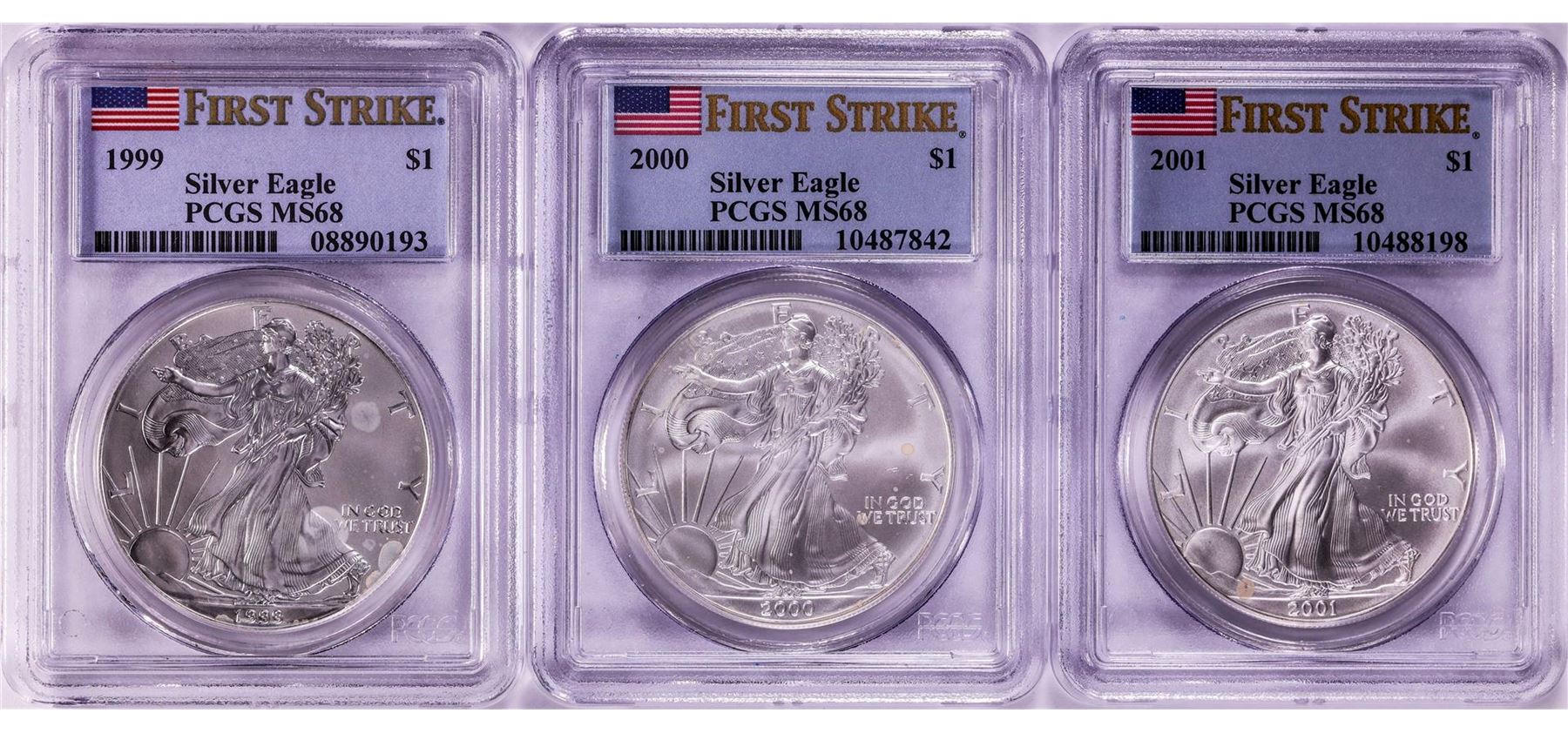 Lot of 1999-2001 $1 American Silver Eagle Coins PCGS MS68 First Strike