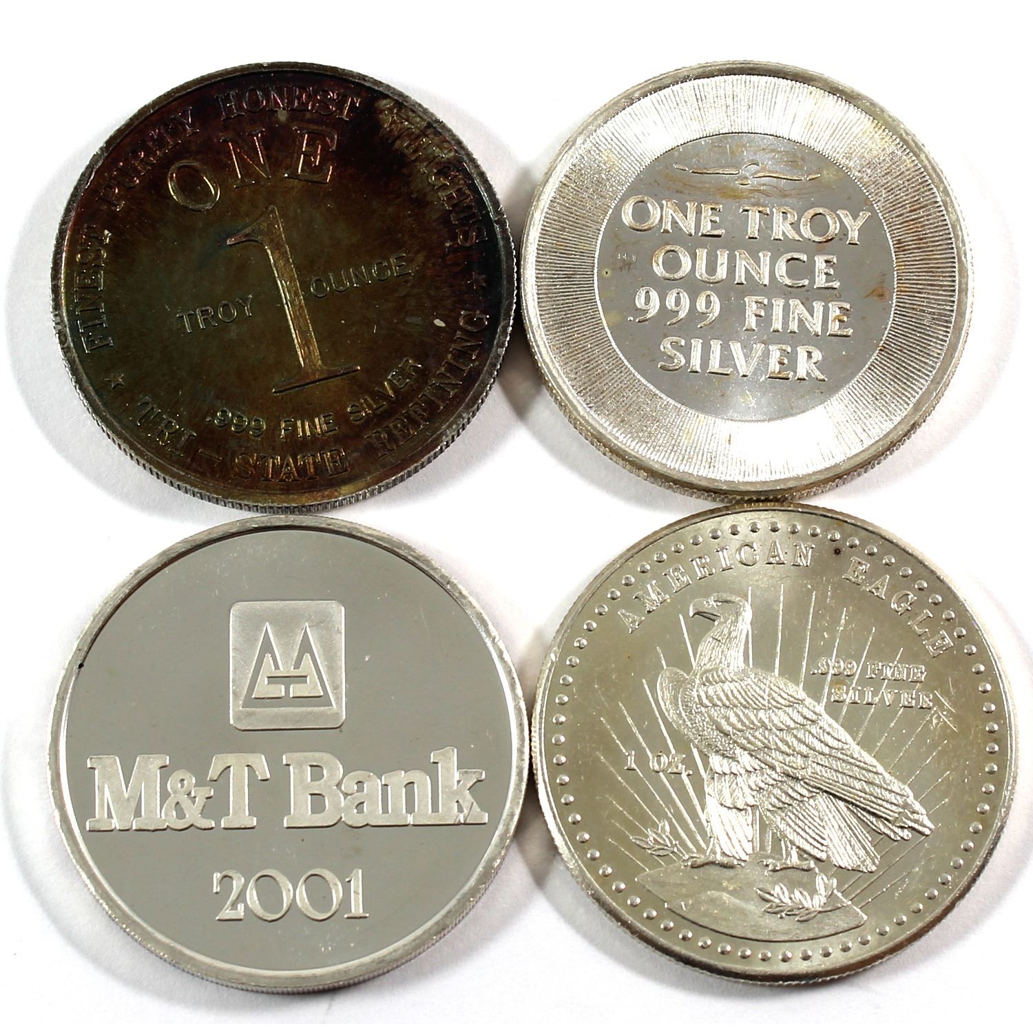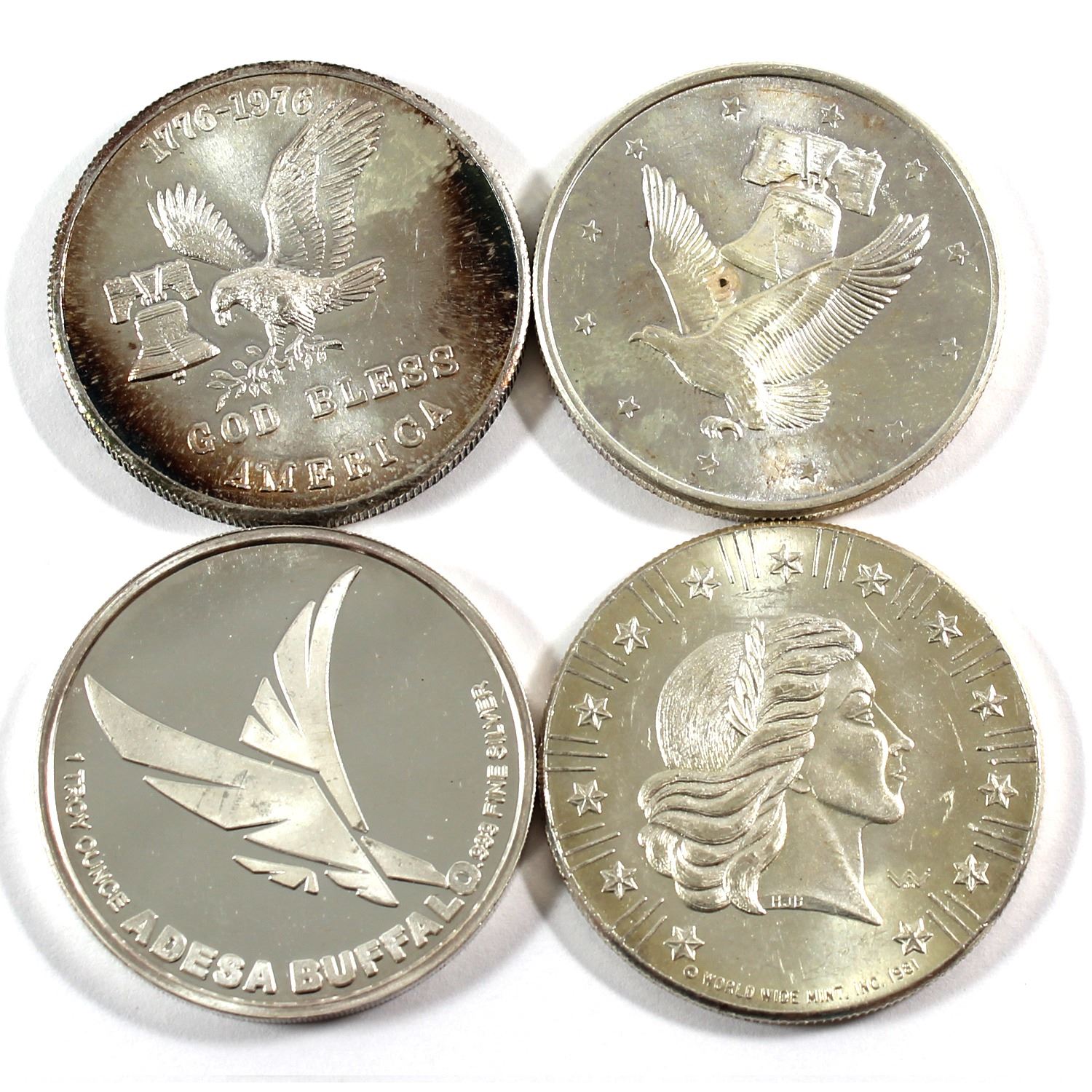 Lot of 1oz Fine Silver Rounds (Tax Exempt) You will receive 4 different Rounds in this lot. 4pcs.