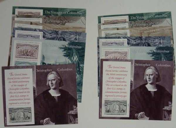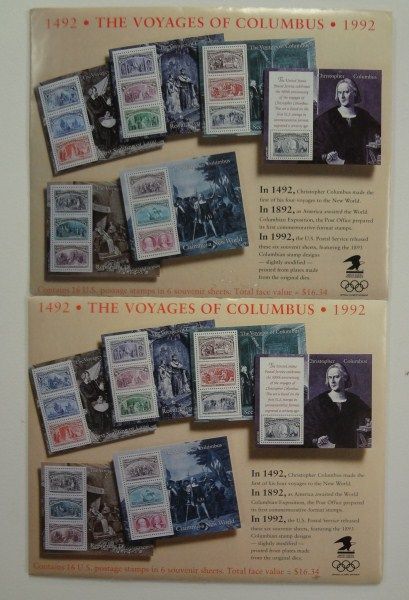 Two packets, each contains 16 U.S. postage stamps in 6 souvenir sheets. Total face value per packet $16.34 or a total of $32.68 per lot.
