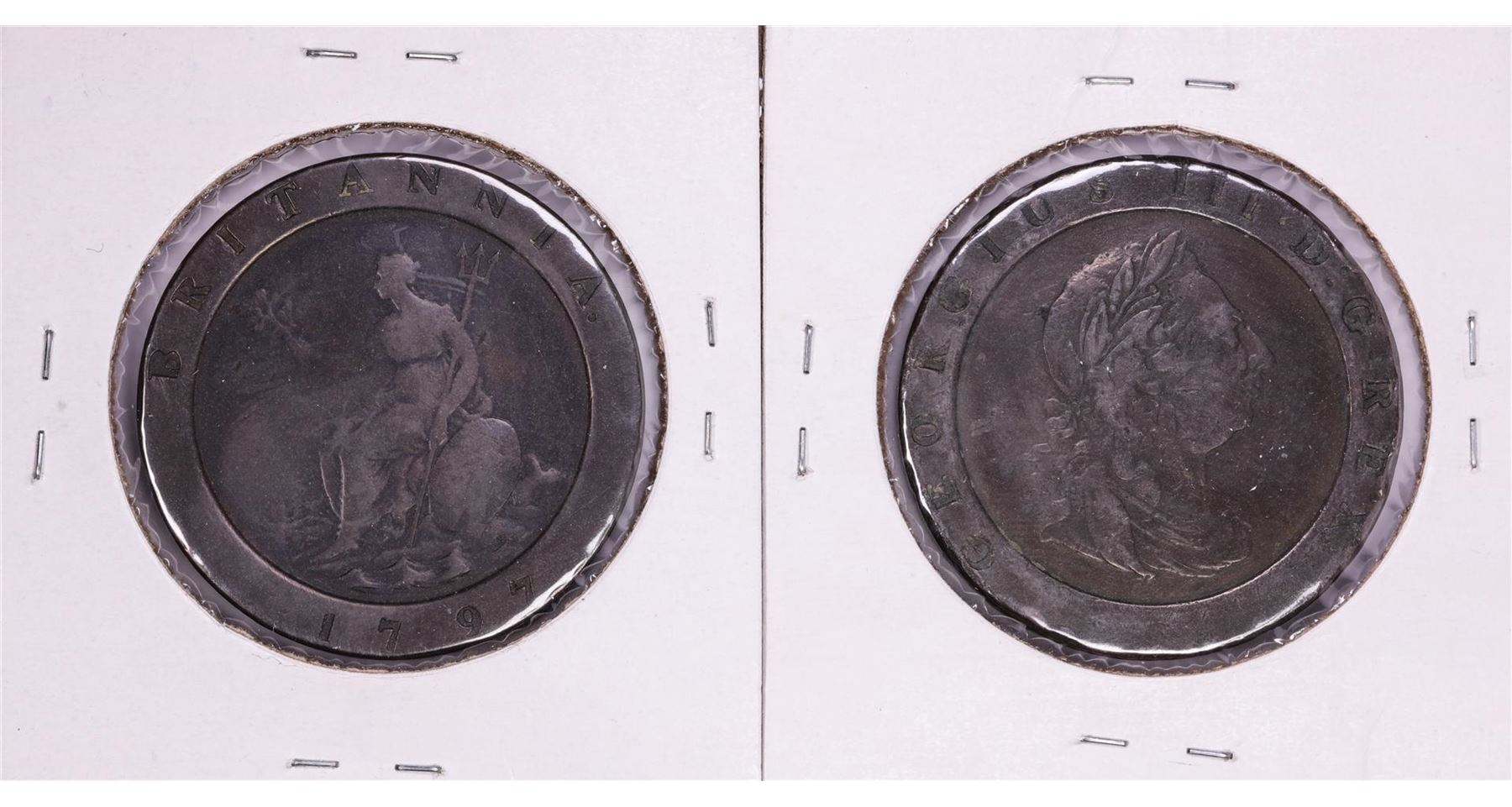 One Lot of (2) 1797 Great Britain 2 Pence Coins.