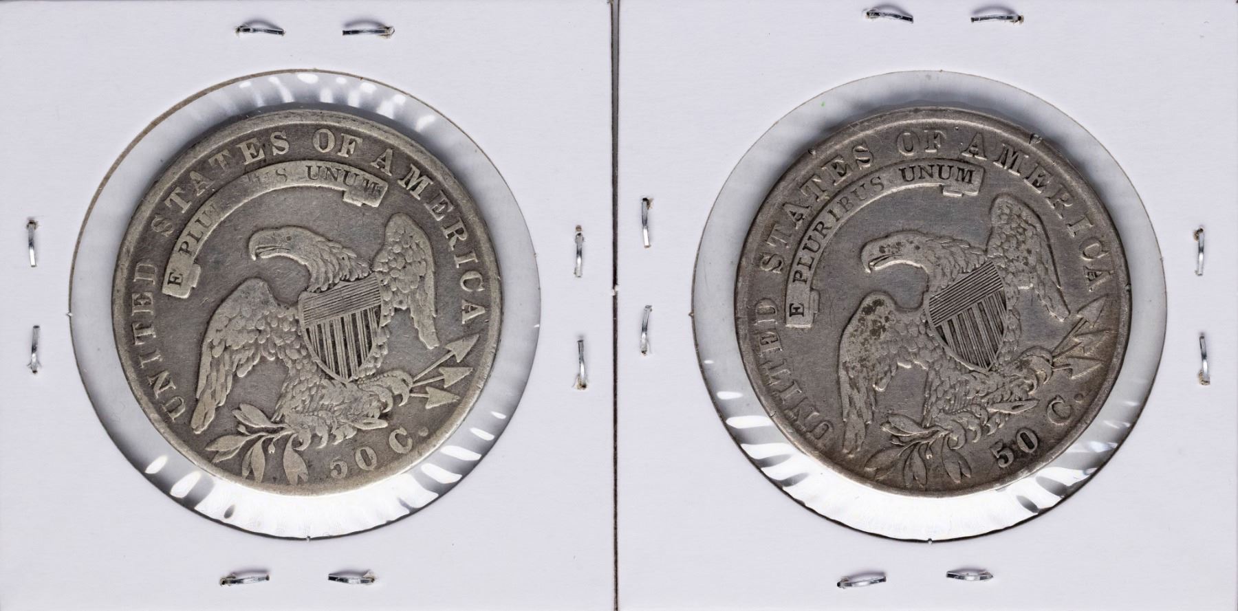 One Lot of (2) 1835 Capped Bust Half Dollar Coins.
