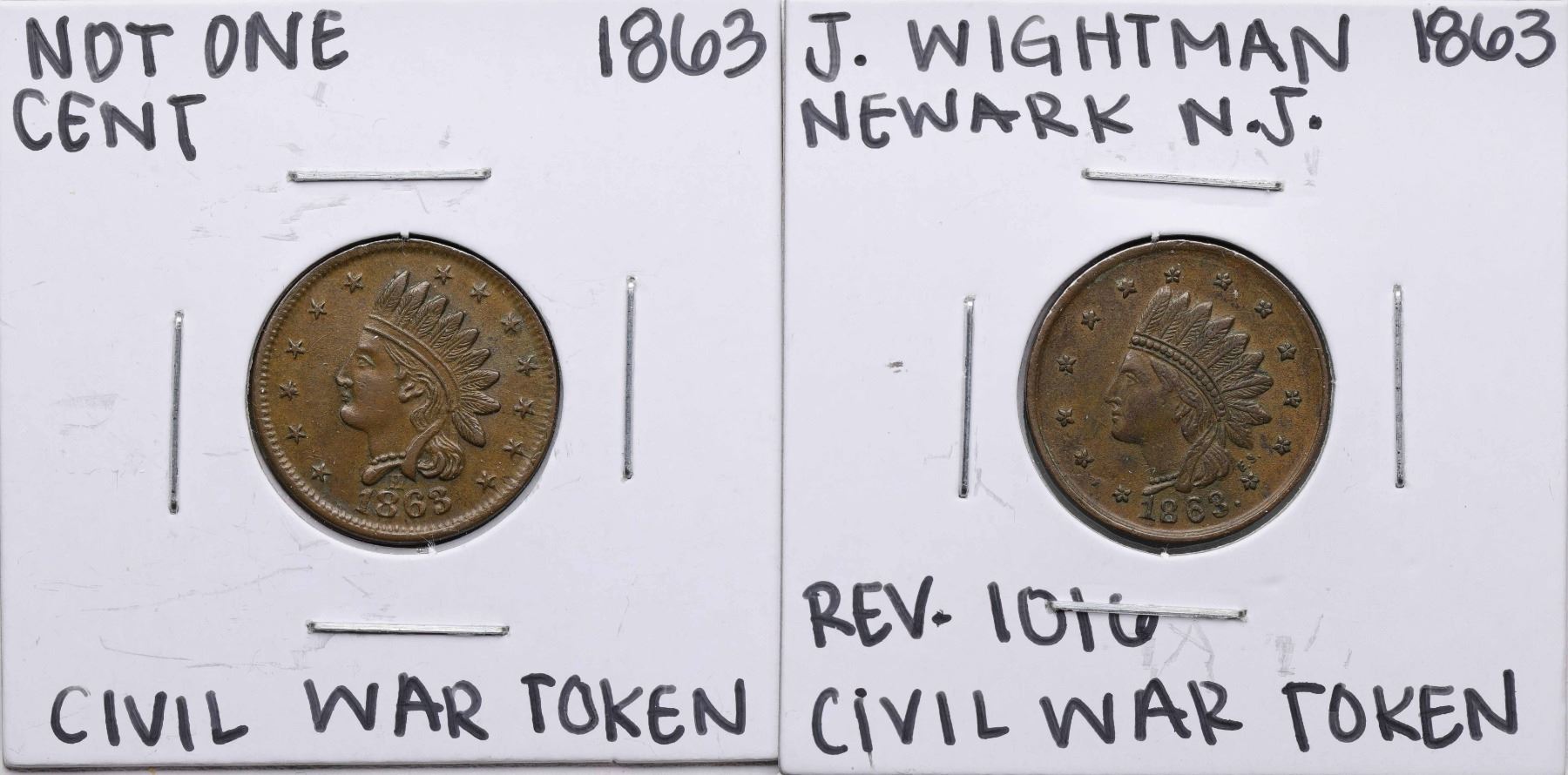 One Lot of (2) 1863 Civil War Tokens.
