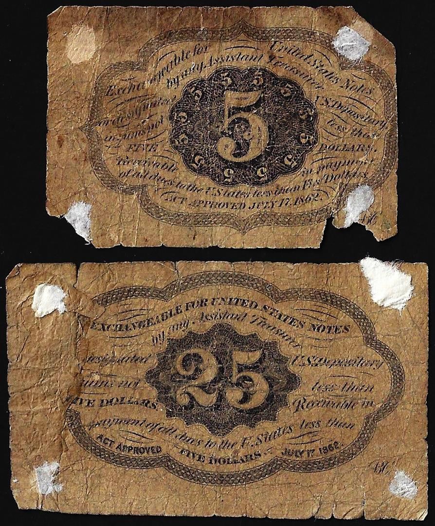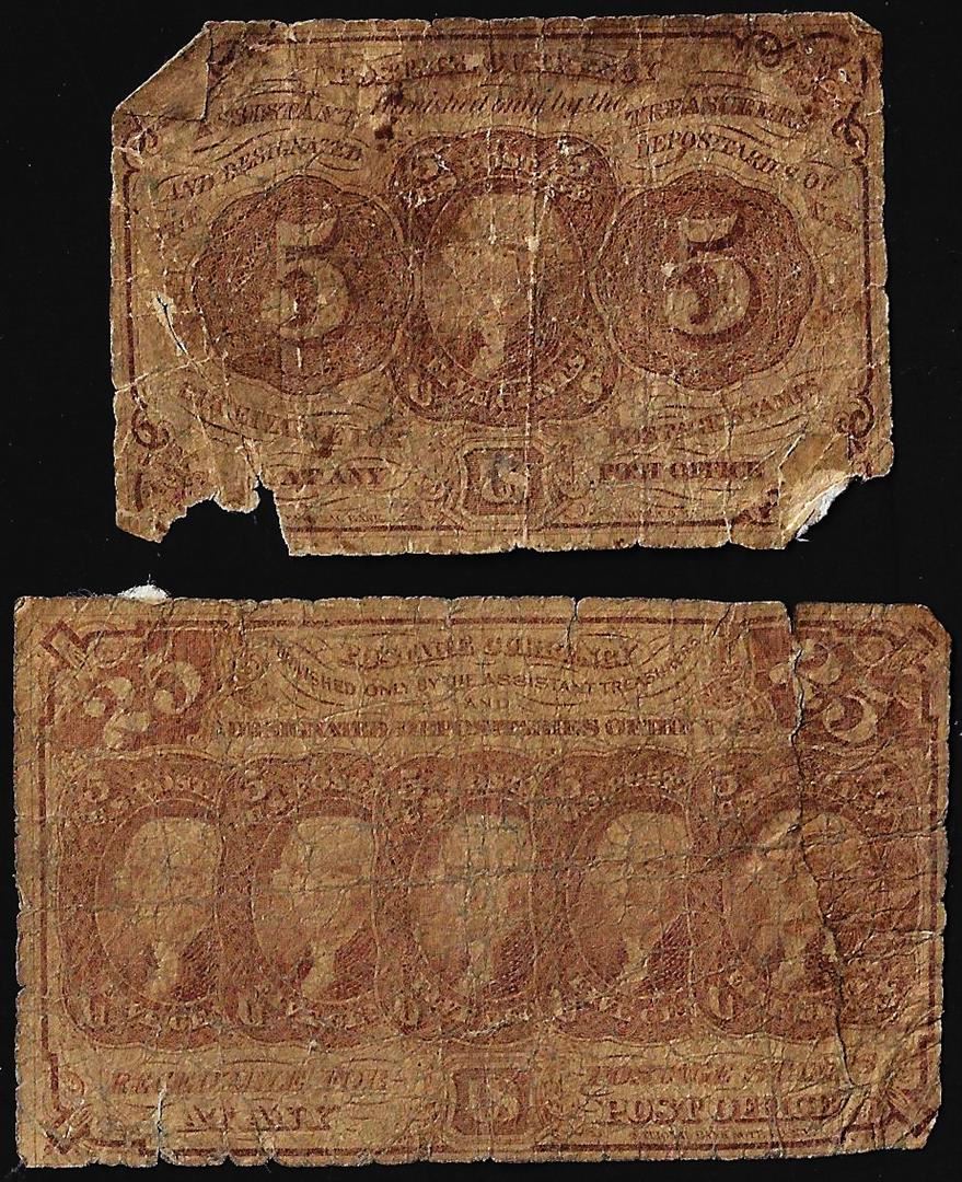 Lot of (2) 1863 First Issue Five & Ten Cent Fractional Currency Notes