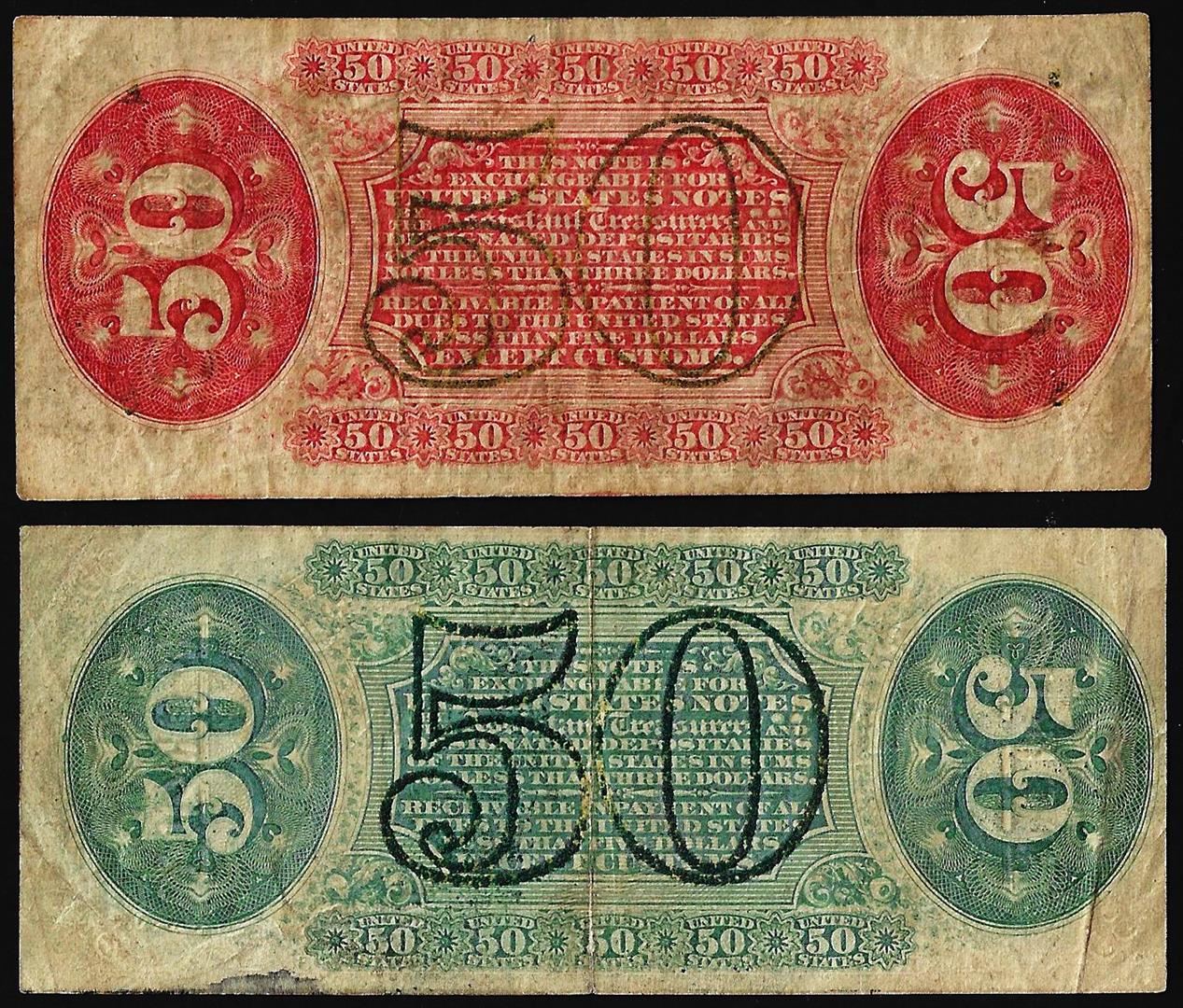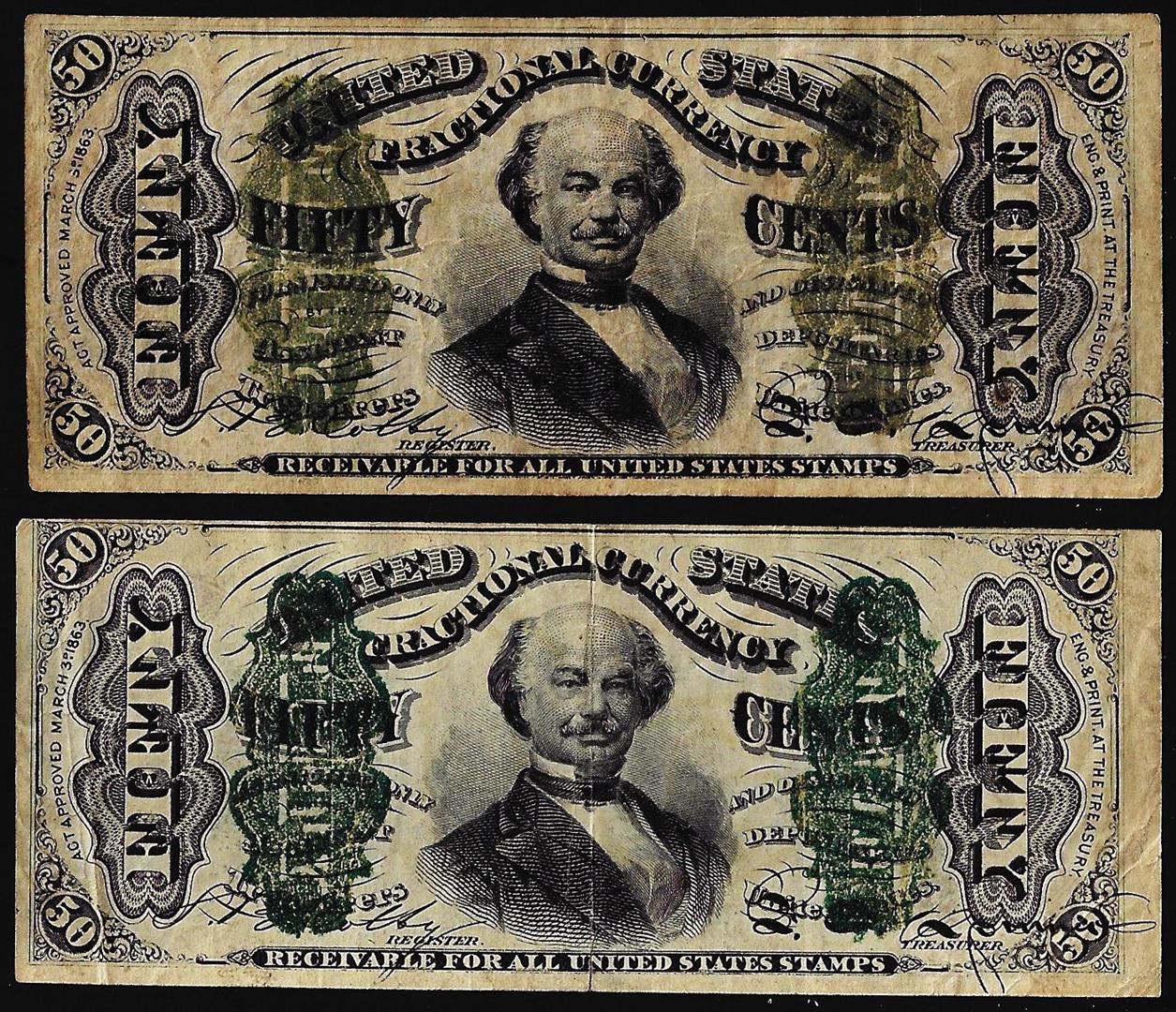 Lot of (2) 1863 Third Issue Fifty Cents Spinner Fractional Currency Notes
