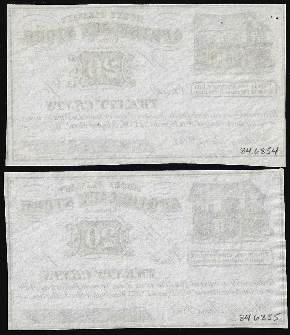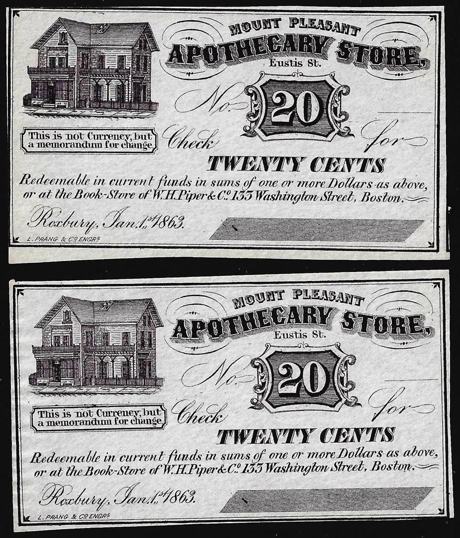 Lot of (2) 1863 Twenty Cents Apothecary Store Mount Pleasant Scrip Notes