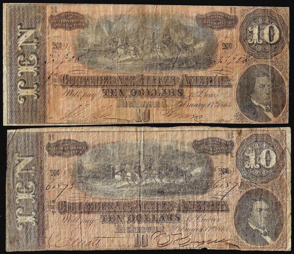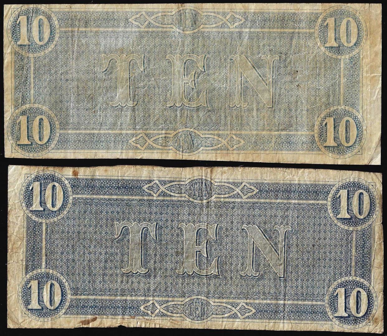 One Lot of (2) 1864 $10 Confederate States of America Notes.