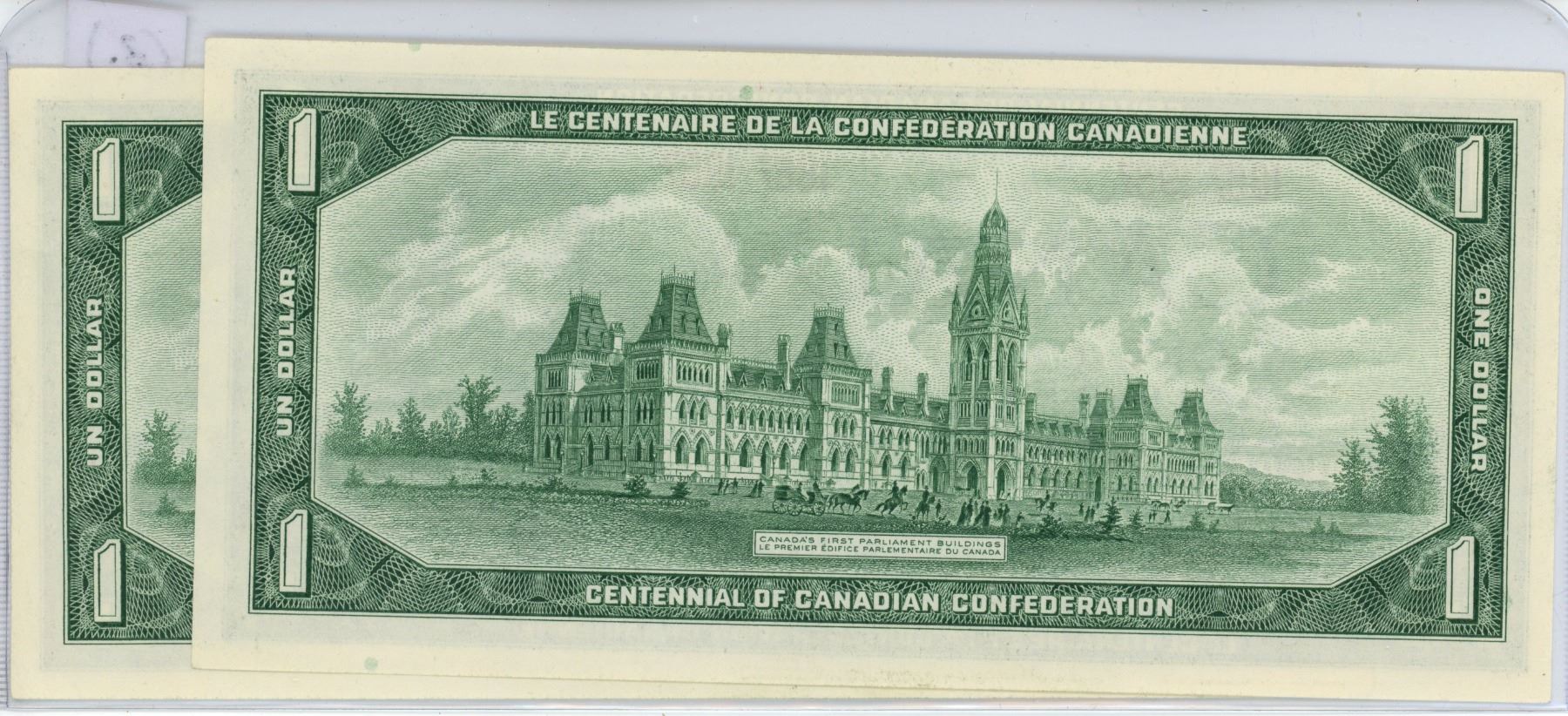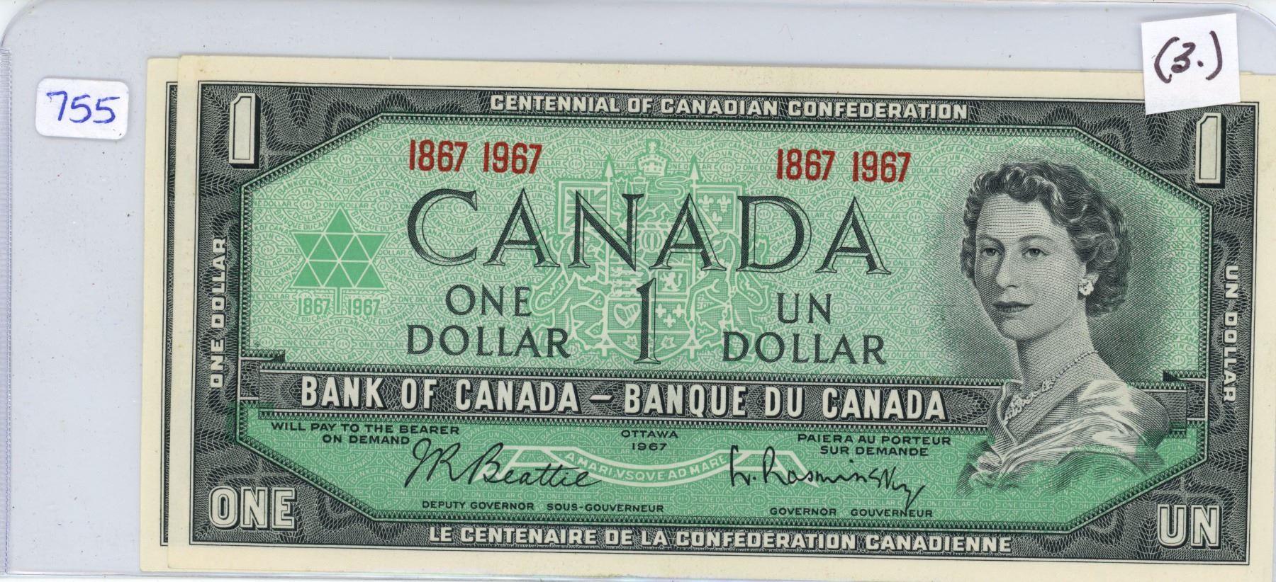 Lot of 2: 1867 1967 Canada $1, Beattie/Rasminsky (3.)