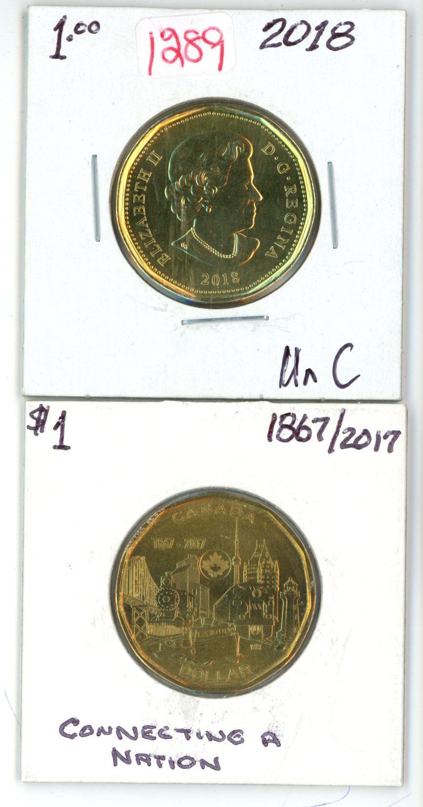 Lot of 2 ( 1867-2017 Connecting a Nation and 2018 UNC.) Canadian Loonies