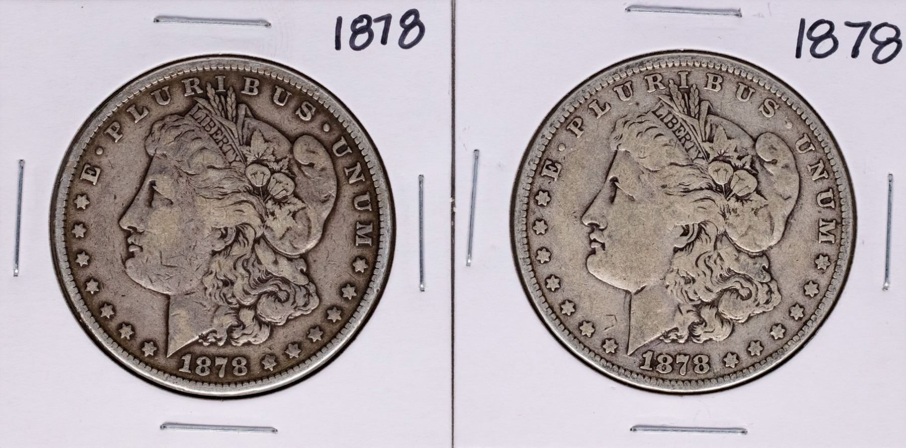 One Lot of (2) 1878 $1 Morgan Silver Dollar Coins.