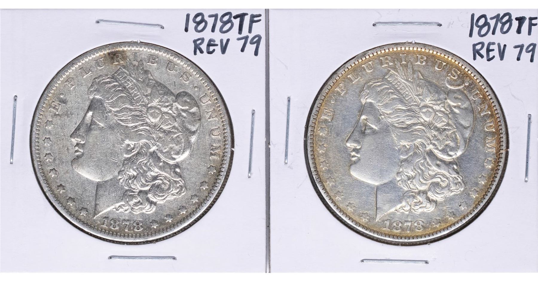 Lot of (2) 1878 7TF Reverse of 79' $1 Morgan Silver Dollar Coins