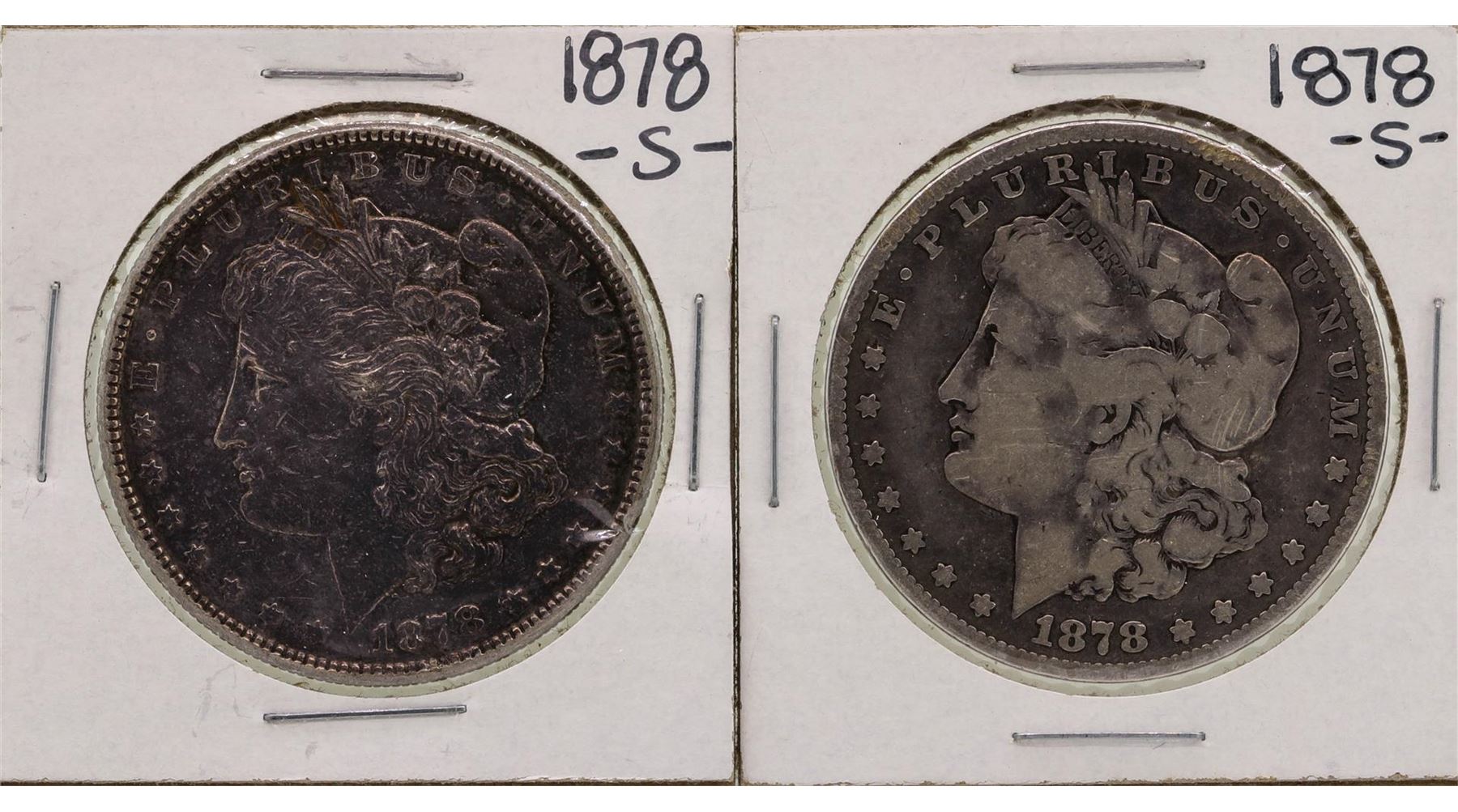 One Lot of (2) 1878-S $1 Morgan Silver Dollar Coins.