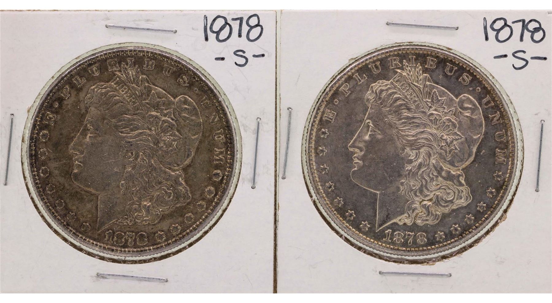 One Lot of (2) 1878-S $1 Morgan Silver Dollar Coins.