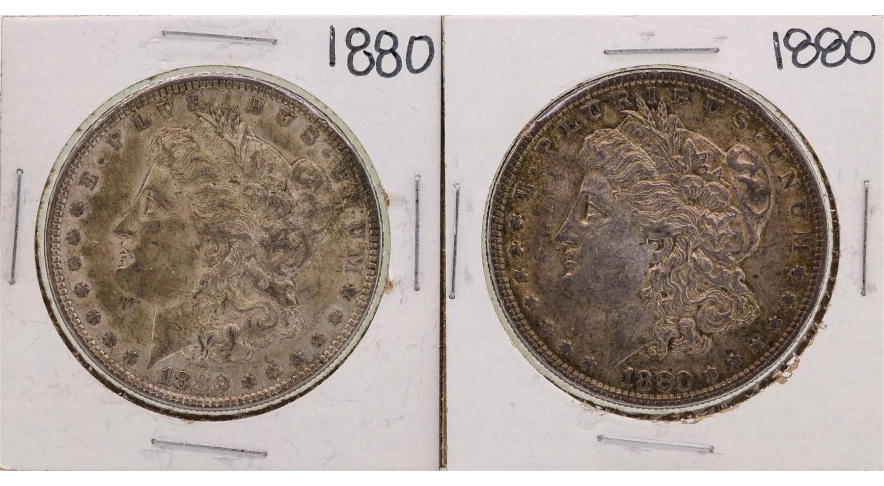 One Lot of (2) 1880 $1 Morgan Silver Dollar Coins.