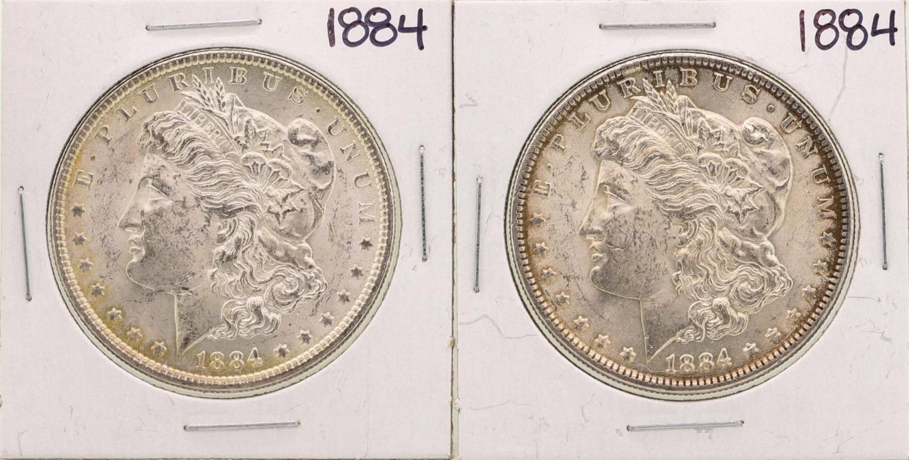 One Lot of (2) 1884 $1 Morgan Silver Dollar Coins.