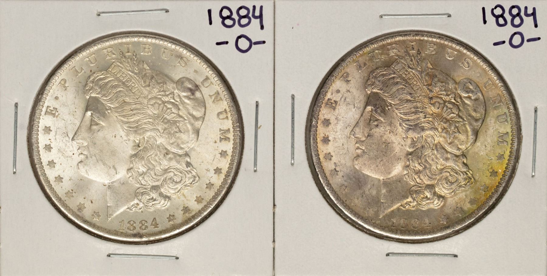 One Lot of (2) 1884-O $1 Morgan Silver Dollar Coins.