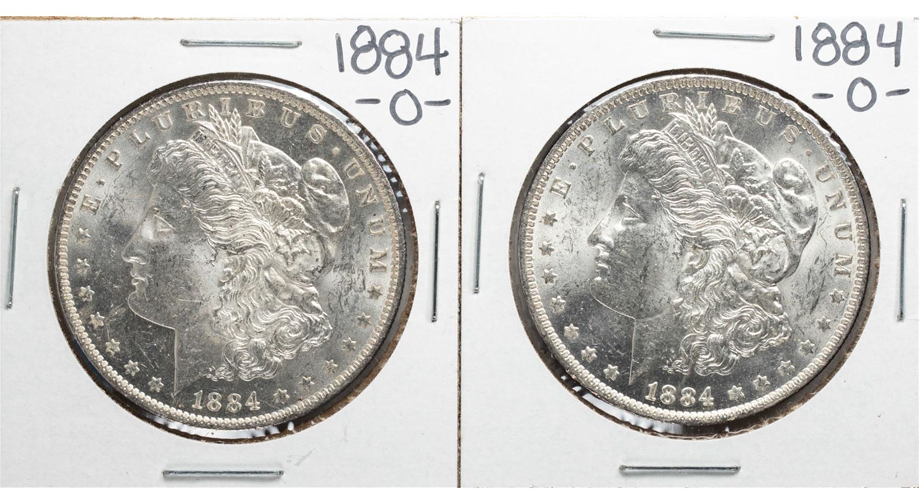 One Lot of (2) 1884-O $1 Morgan Silver Dollar Coins.