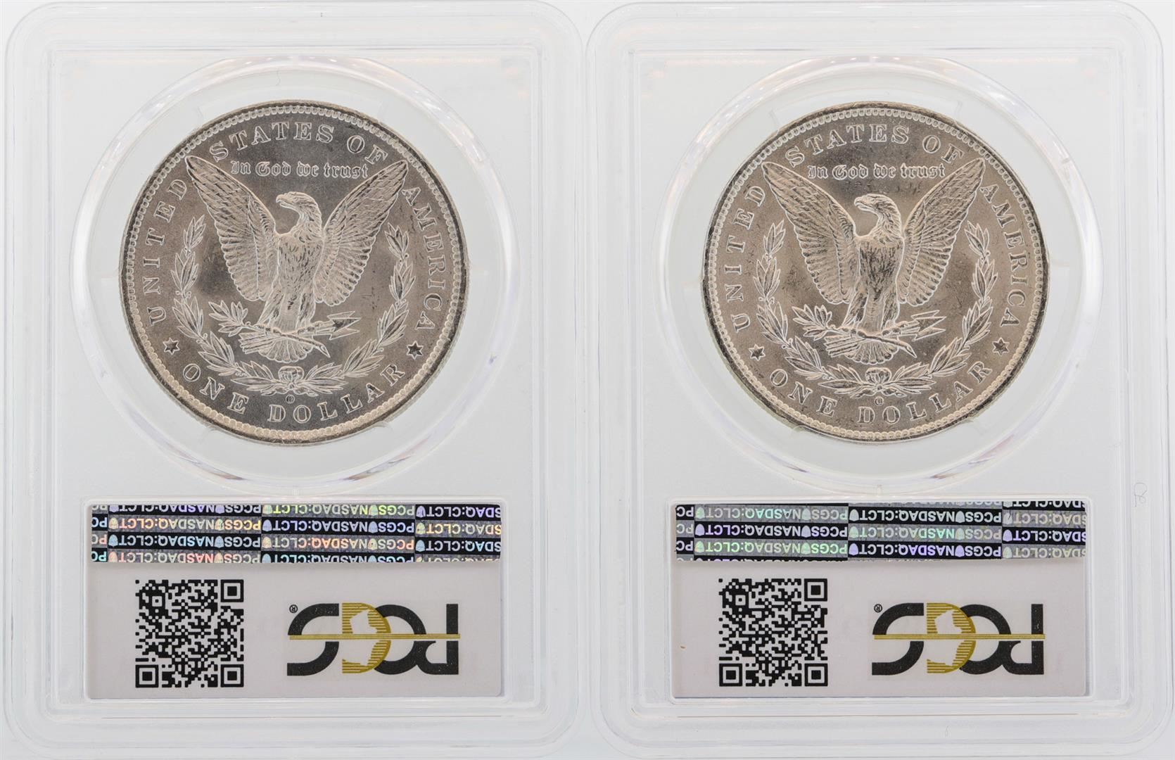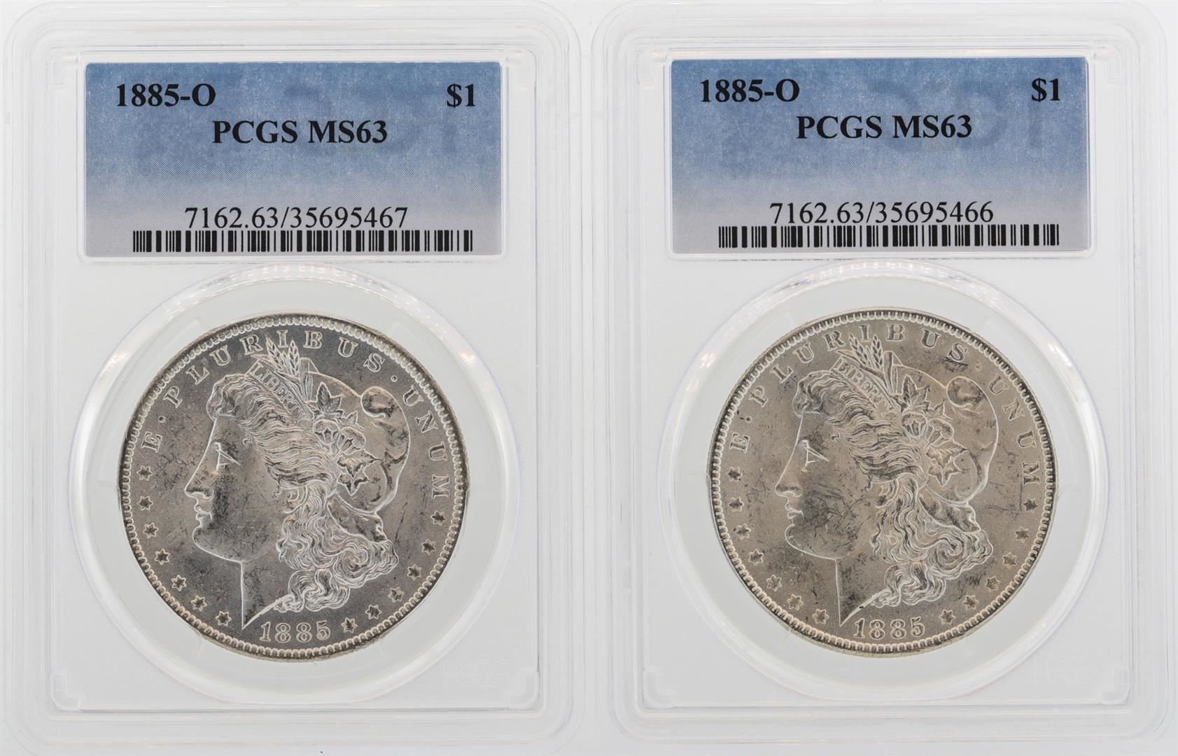 One Lot of (2) 1885-O $1 Morgan Silver Dollar Coins PCGS MS63. PCGS Certified.