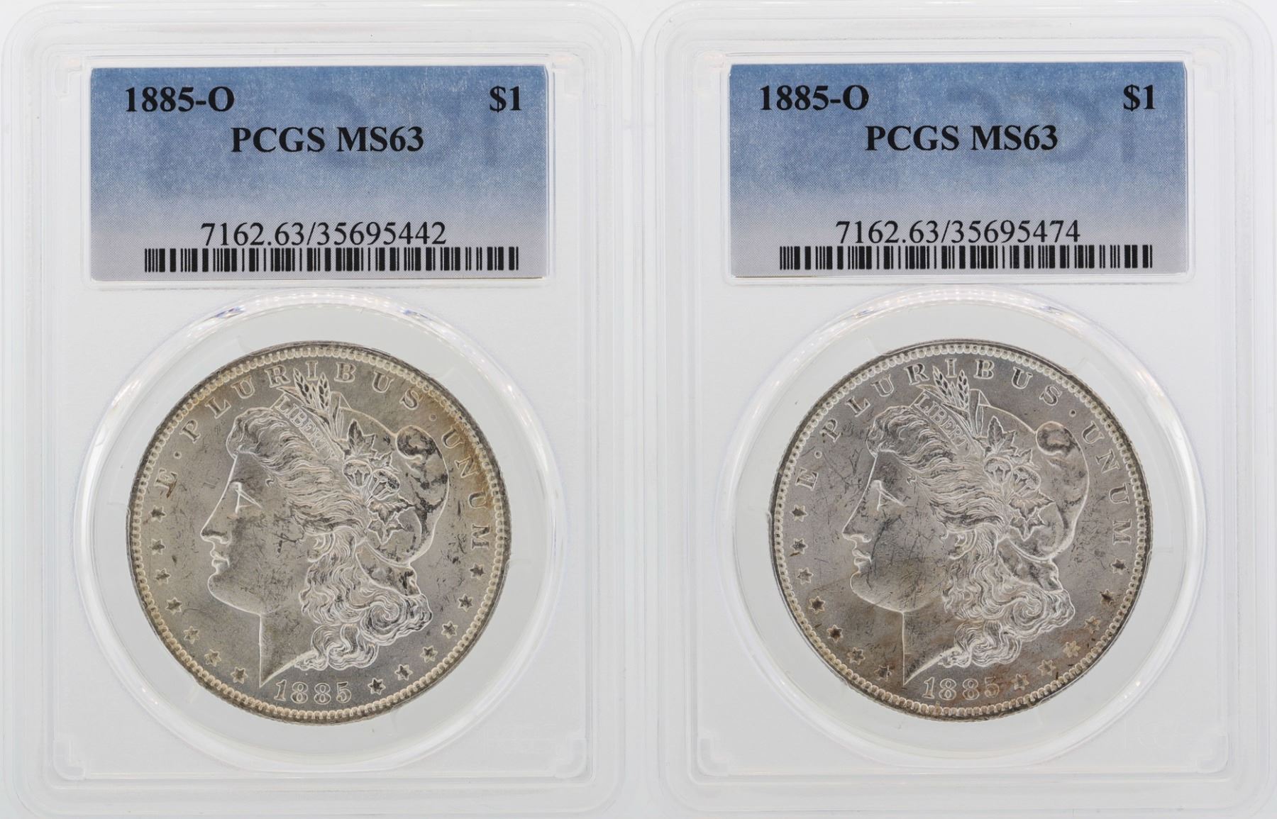 One Lot of (2) 1885-O $1 Morgan Silver Dollar Coins PCGS MS63.