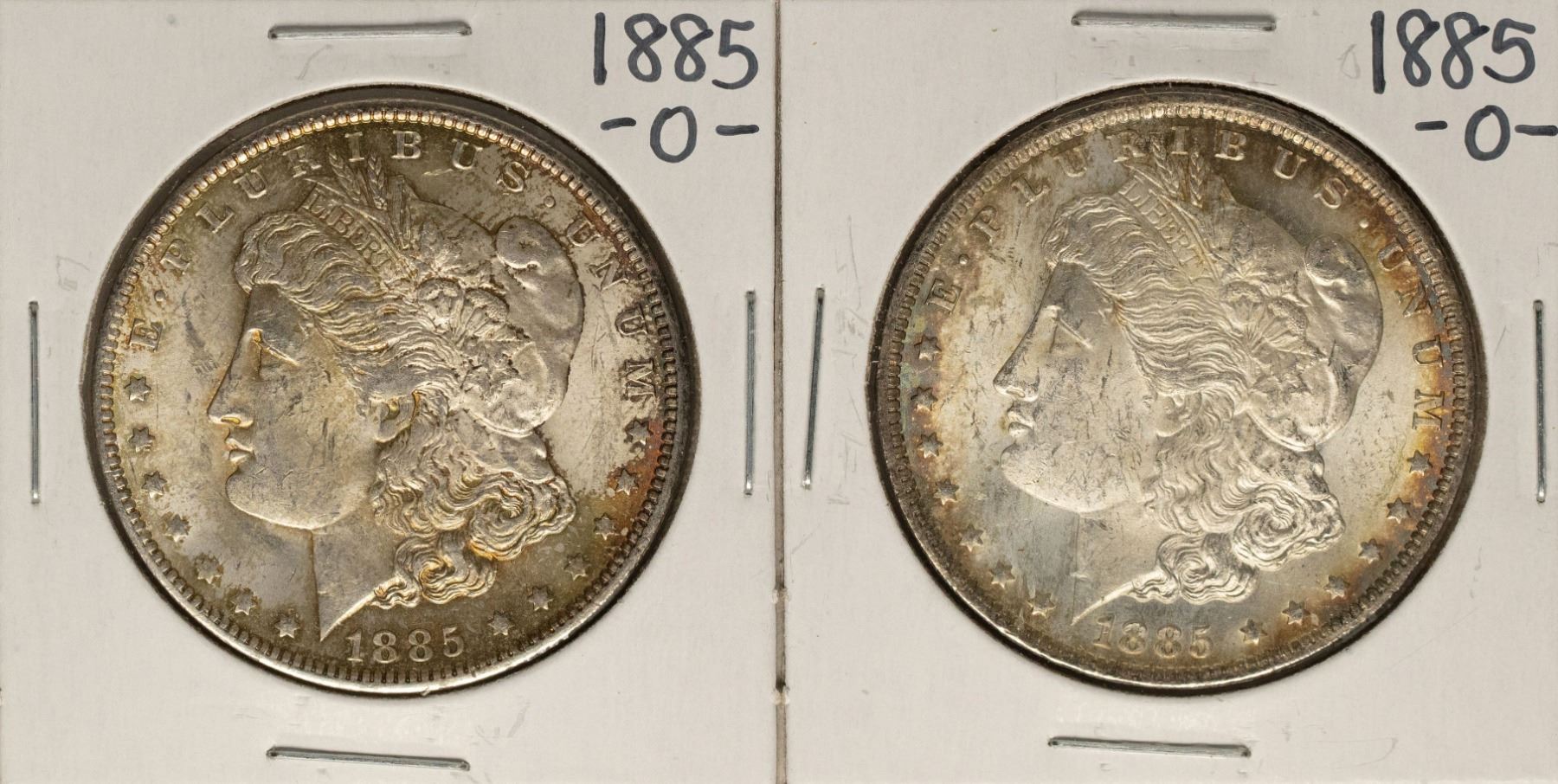 One Lot of (2) 1885-O $1 Morgan Silver Dollar Coins.