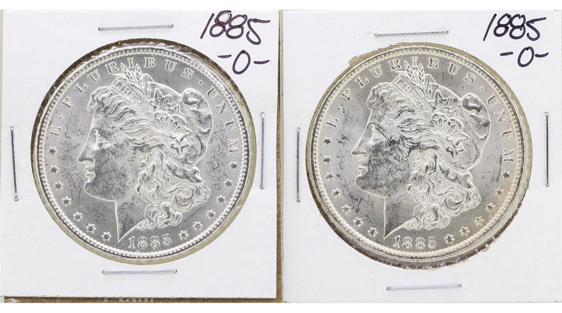 One Lot of (2) 1885-O $1 Morgan Silver Dollar Coins.