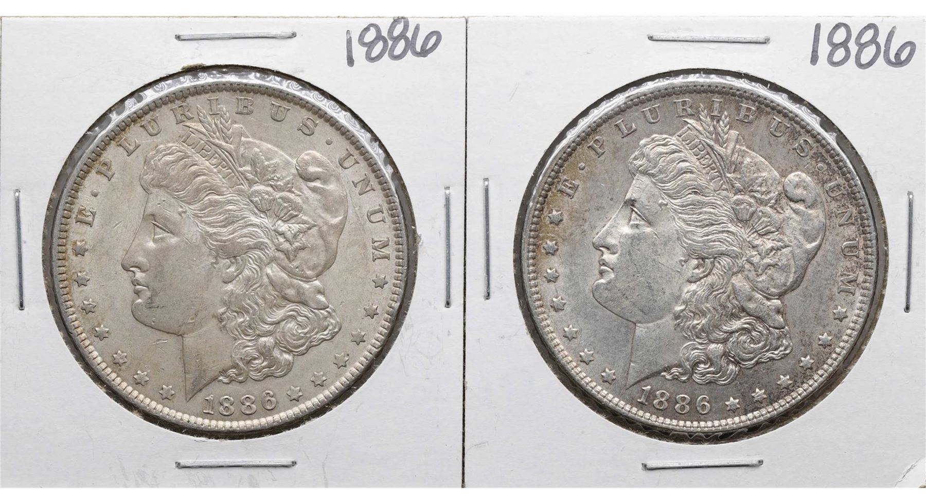 One Lot of (2) 1886 $1 Morgan Silver Dollar Coins.