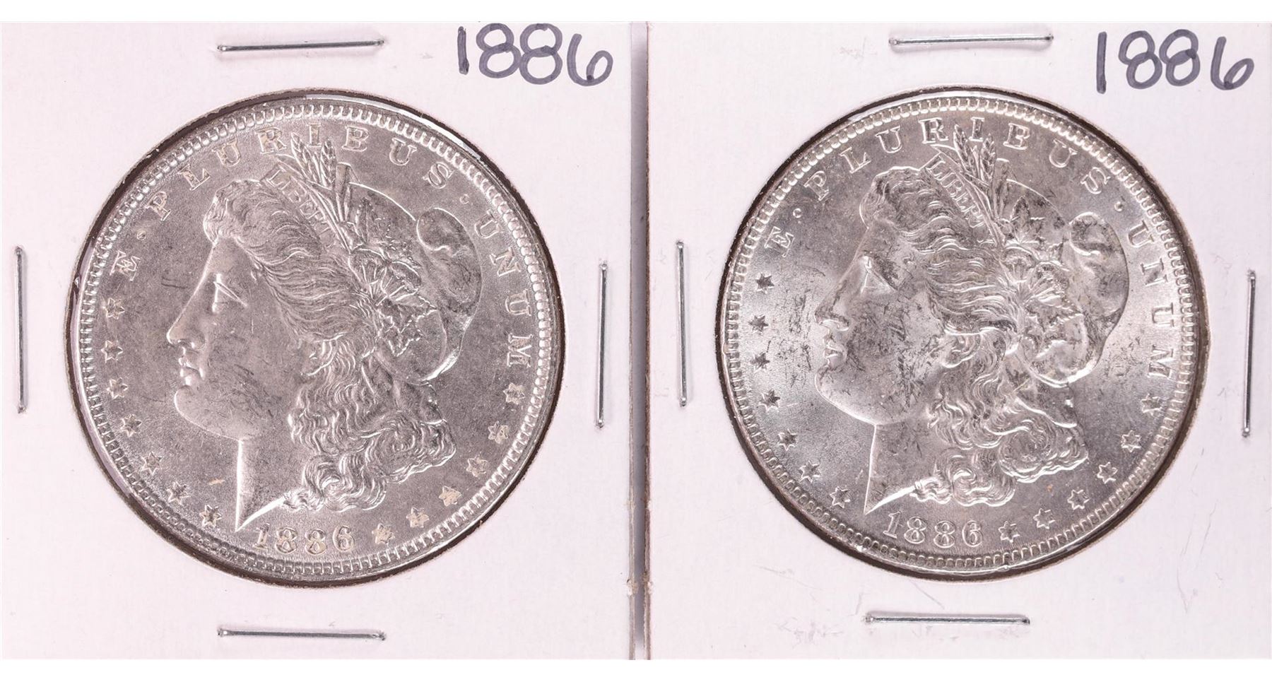 One Lot of (2) 1886 $1 Morgan Silver Dollar Coins.